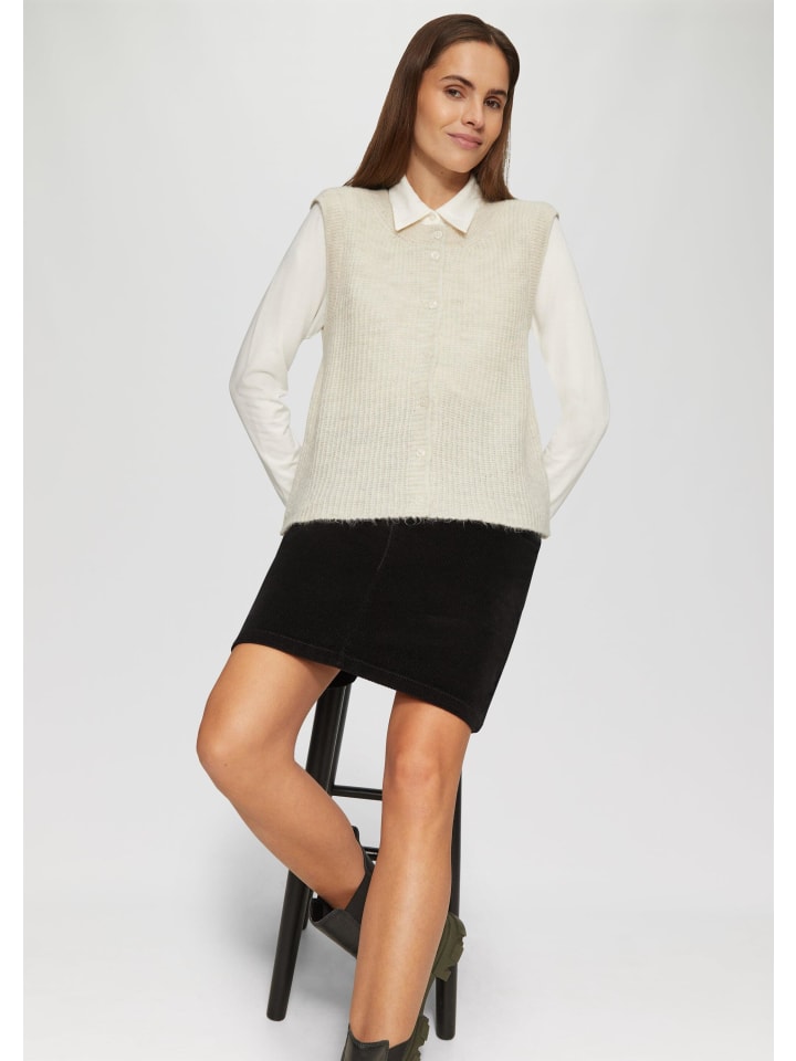 Откройте для себя этот уютный трикотажный жилет свободного кроя. Круглый вырез и практичная планка на пуговицах идеально дополнят ваш повседневный образ. Мягкая ткань идеально подходит для отдыха.