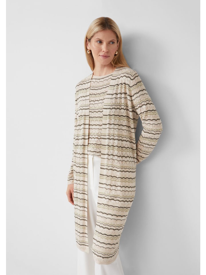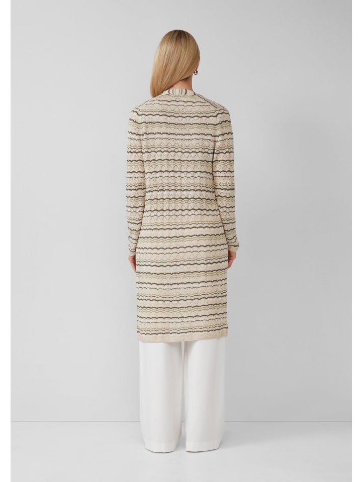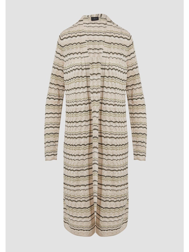 Элегантность и комфорт: этот длинный кардиган с ажурным узором и блестящей пряжей станет вашим стильным спутником на любой случай. Будь то деловая встреча или праздничное мероприятие - вы будете блистать в этой универсальной вещи тонкой вязки. Классический крой и материал из вискозы подчеркнут вашу фигуру, а принт по всей поверхности ненавязчиво привлечет внимание.