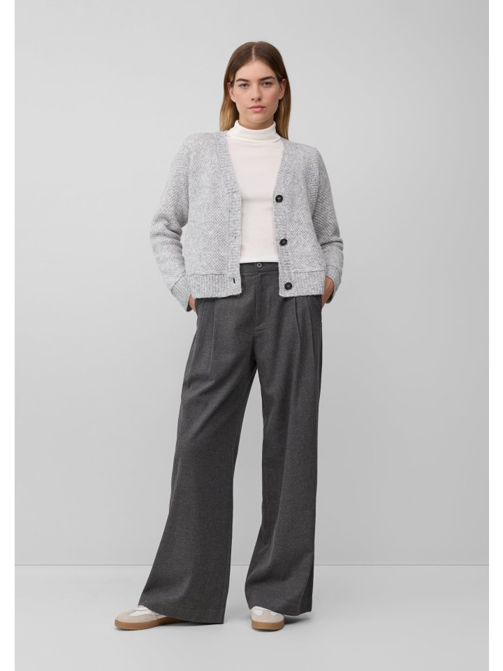Этот уютный кардиган из смесовой шерсти с V-образным вырезом побалует вас в прохладные дни своей мягкой, согревающей внутренней частью. Классический вязаный узор и практичная планка на пуговицах делают его идеальным компаньоном для расслабленных, повседневных моментов.