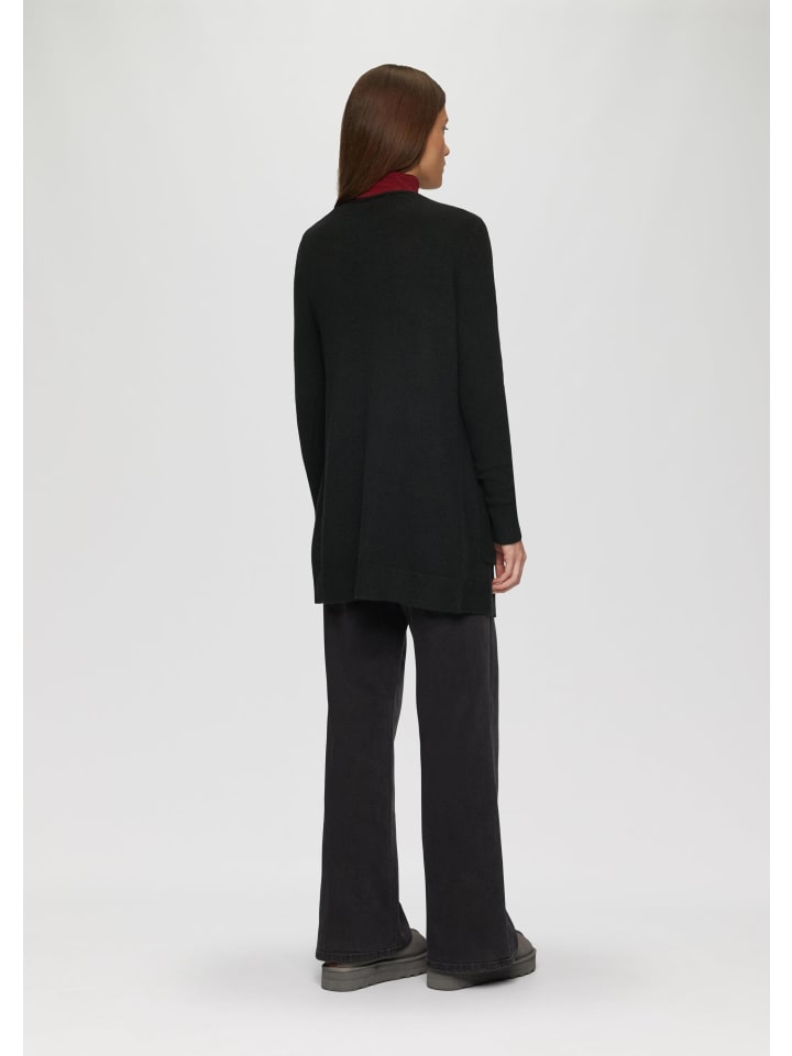 Этот длинный кардиган прямого кроя согреет вас уютом и теплом и будет мягким на ощупь. Классический трикотажный узор, практичные ребристые манжеты и накладные карманы делают его идеальным повседневным спутником для расслабленных моментов.