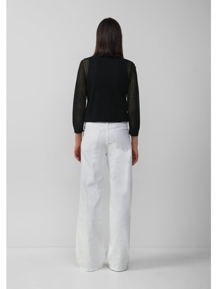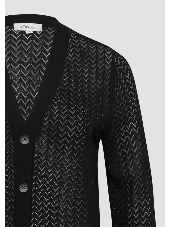 Откройте для себя этот женственный кардиган с нежным ажурным узором. Мягкая вискозная ткань и V-образный вырез подчеркнут вашу фигуру. Идеально подходит для расслабленного отдыха благодаря рукавам 3/4 и эластичному облегающему крою.