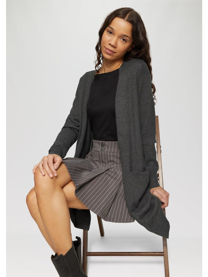 Ваш повседневный спутник для стильных образов: длинный кардиган из вискозной смеси. Высококачественный, мягкий и с открытым передом - идеально подходит для вашего повседневного стиля. Ребристые манжеты, спущенная линия плеча и внутренний карман обеспечат вам комфорт в дороге.