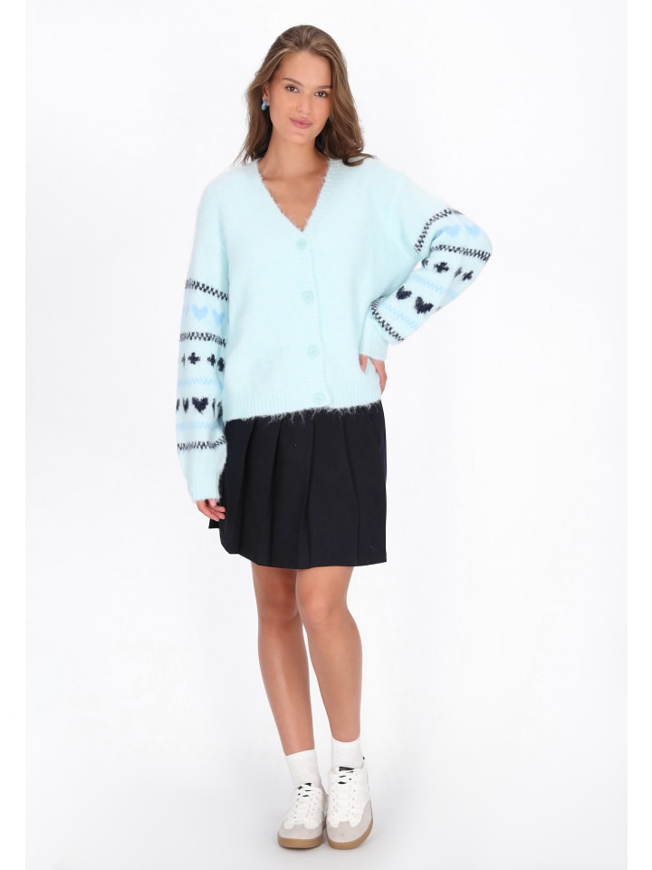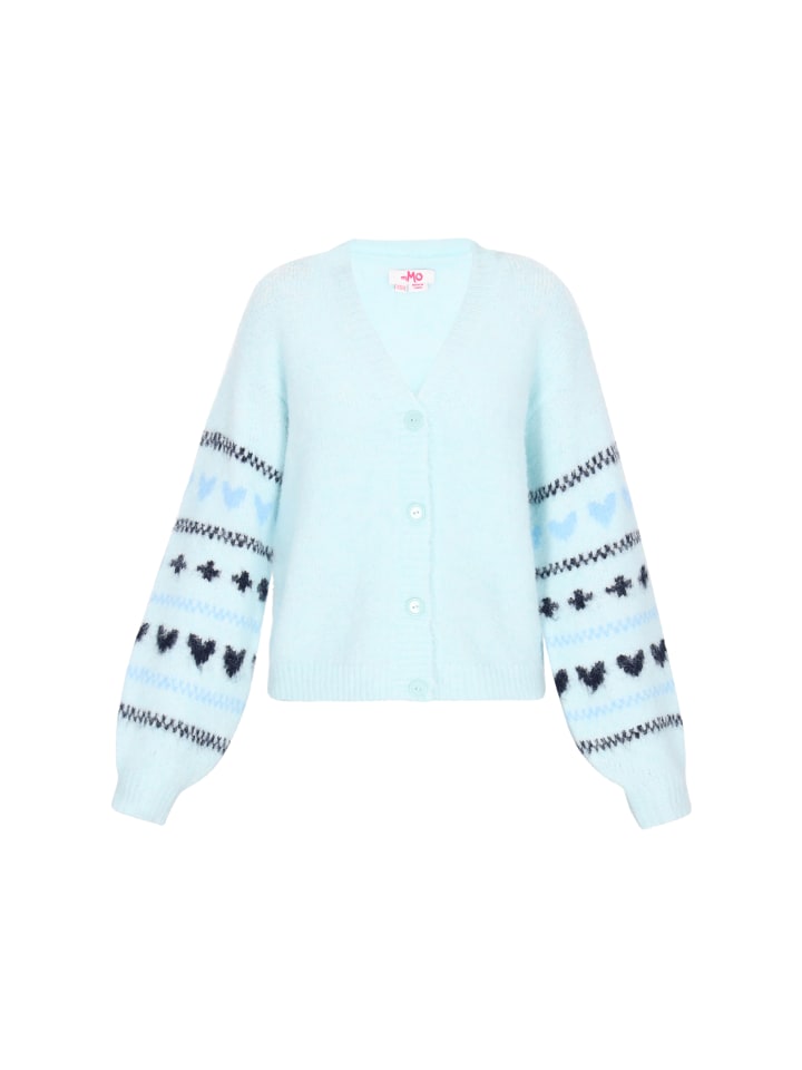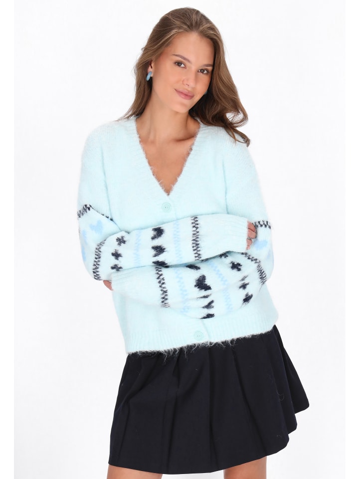 Стильный и очаровательный кардиган в стиле casual. Свободный крой с V-образным вырезом идеально сочетает в себе комфорт и молодежный стиль. Длинные рукава-фонарики и спущенные плечи придают ему непринужденный и модный вид. Кардиган связан трикотажем, застегивается на пуговицы и украшен нежным узором в виде сердечек, что добавляет ему очарования и девичьей грации. Это невероятно удобный и уютный вариант на каждый день - идеально сочетается с джинсами, юбками и платьями. Идеально подходит для тех, кто ценит непринужденный образ с ноткой милого стиля. Из коллекции Young Fashion.