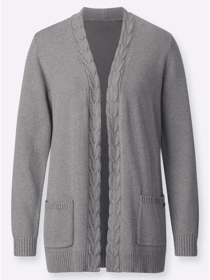 Непринужденный открытый кардиган с красивым узором «косички» спереди. Два накладных кармана и длинные рукава. Ребристый подол. В поддержку инициативы «Сделано в Африке» (Cat. Made in Africa).