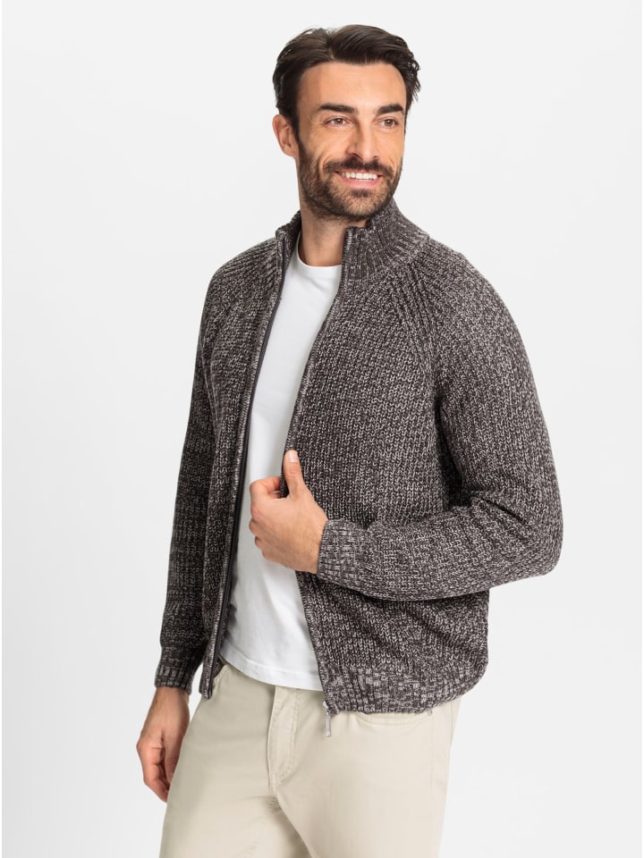 Вяжем, вяжем, ура! Предвкушайте отличный кардиган по суперцене. От Catamaran. Эффектный узор «жемчужный узор» из меланжевой пряжи, с длинной молнией и удобными рукавами реглан. Связанный по форме и вязанный, с манжетами в рубчик.