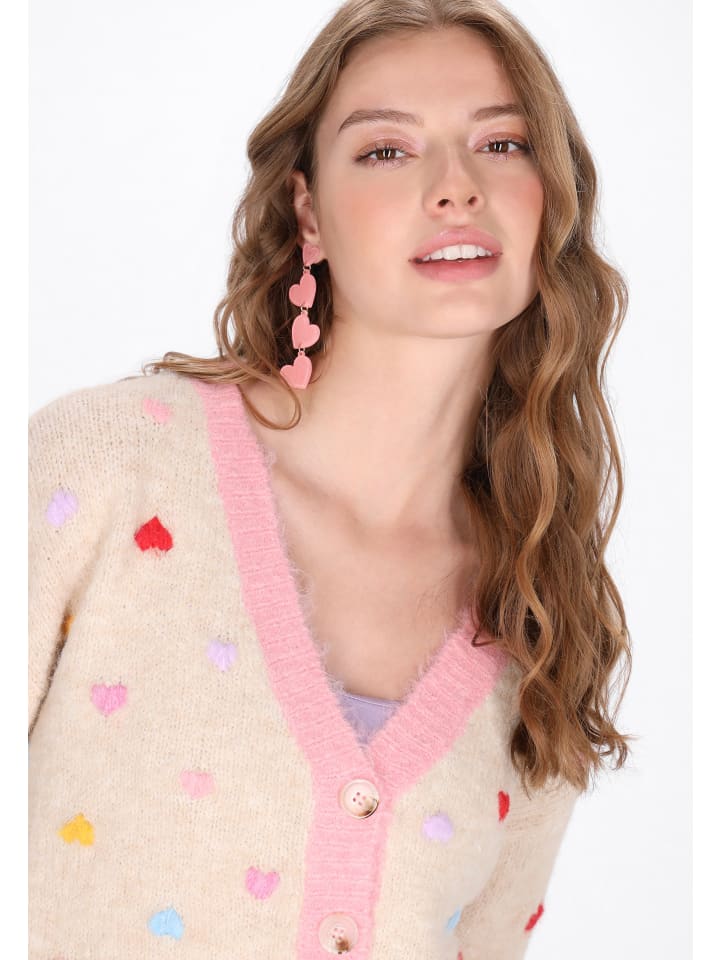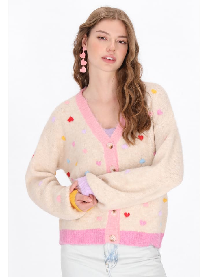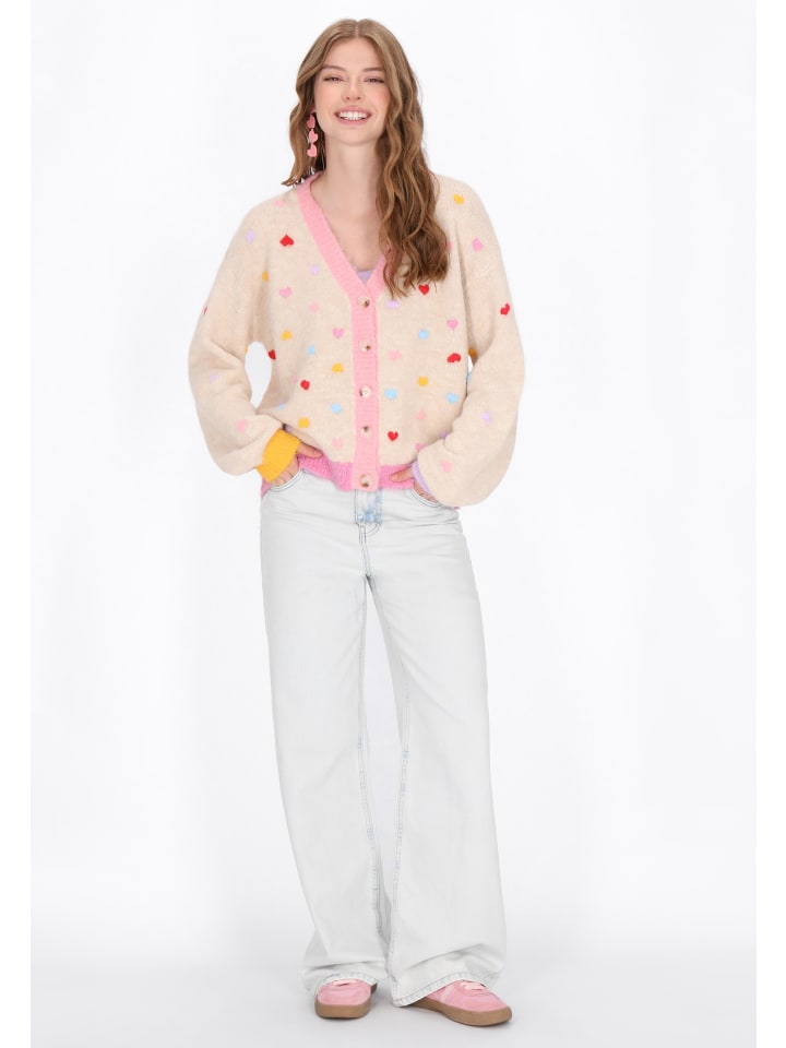 Этот мягкий кардиган из коллекции Young Fashion Collection - идеальное сочетание комфорта и очаровательного стиля. Свободный крой со спущенной линией плеча и эффектными рукавами-фонариками создает модный, слегка свободный образ. Кардиган разработан для повседневного комфорта, имеет классический V-образный вырез, длинные рукава и очаровательную вышивку в форме сердца, которая добавляет ему неповторимый девичий шарм. Изготовленный из мягкого трикотажа, он идеально подойдет в качестве дополнительного слоя к повседневным нарядам. Это необходимая вещь в гардеробе каждой юной модницы.