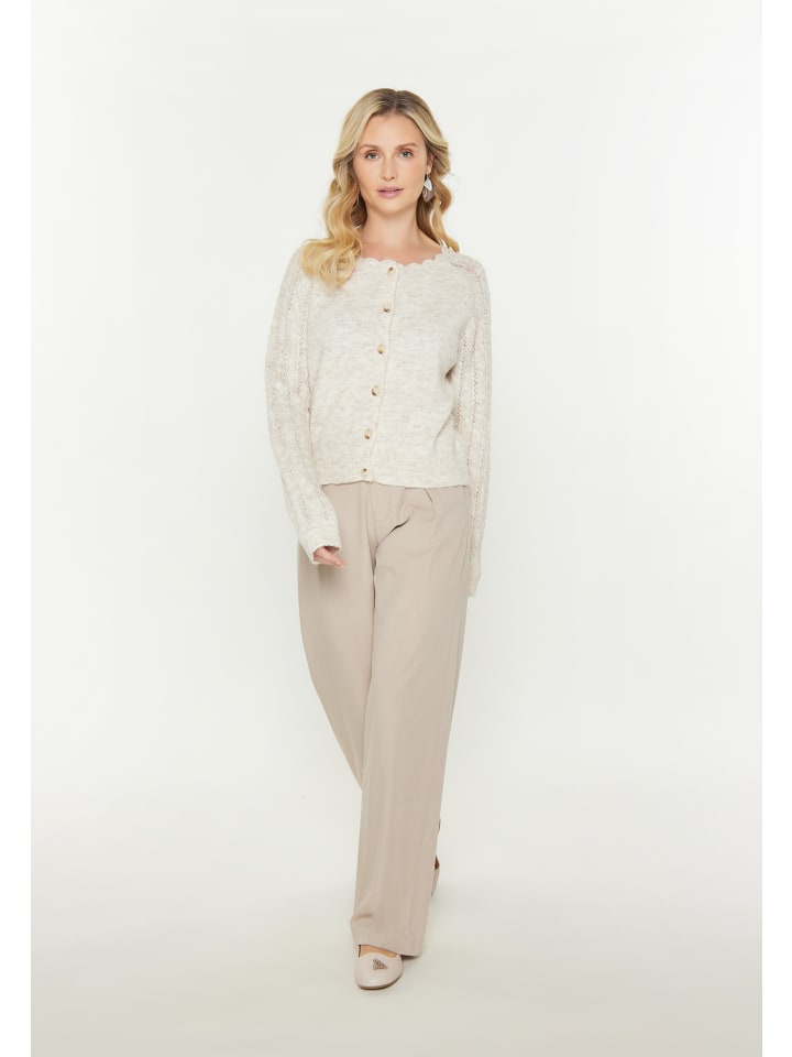 - Кардиган прямого кроя с круглым вырезом и длинными рукавами