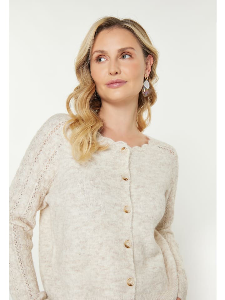 Добавьте изысканности в свой повседневный стиль с этим кардиганом прямого кроя из коллекции Fashion Look. Кардиган с круглым вырезом, декоративным узором и длинными рукавами выполнен из мягкой трикотажной ткани с уникальным сочетанием меланжевого и ажурного узора для дополнительной текстуры и глубины. Застежка на пуговицы спереди придает стильный вид этому уютному изделию. Удобный и непринужденно шикарный, этот кардиган идеально подойдет для того, чтобы разнообразить ваш повседневный гардероб модной ноткой.