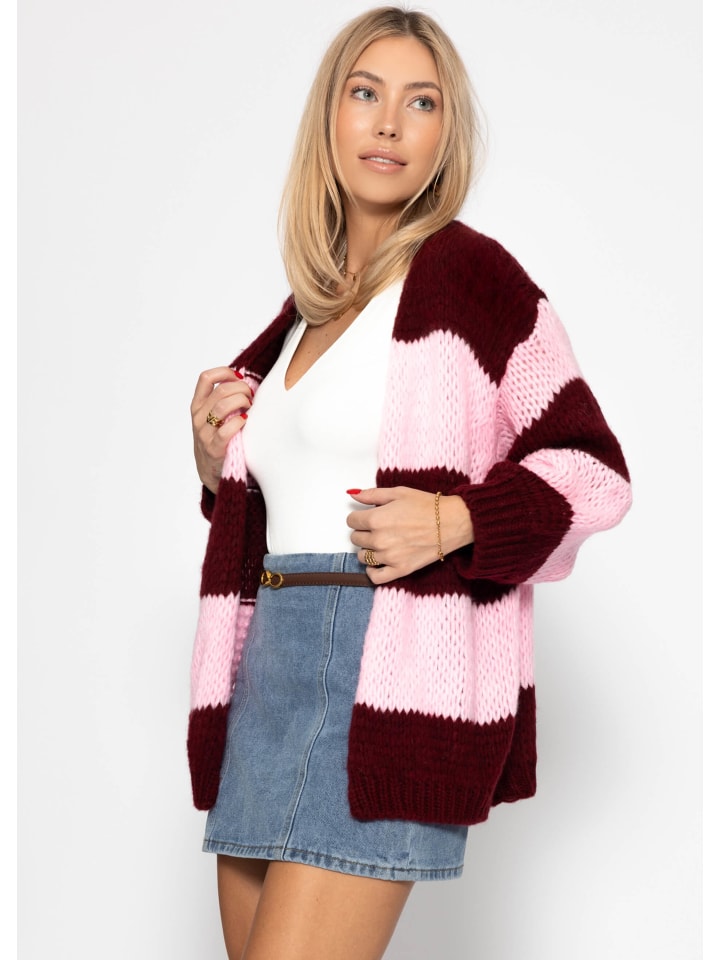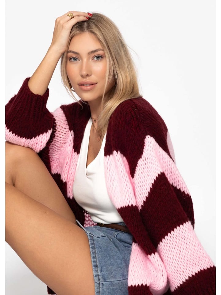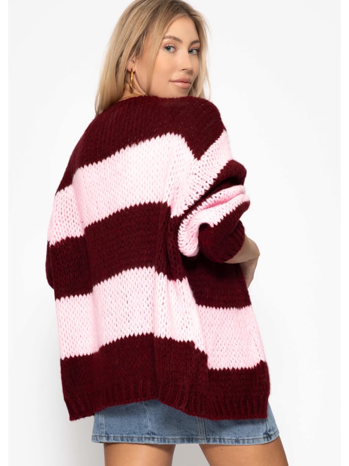 Полосатый кардиган оверсайз бордового цвета SASSYCLASSY