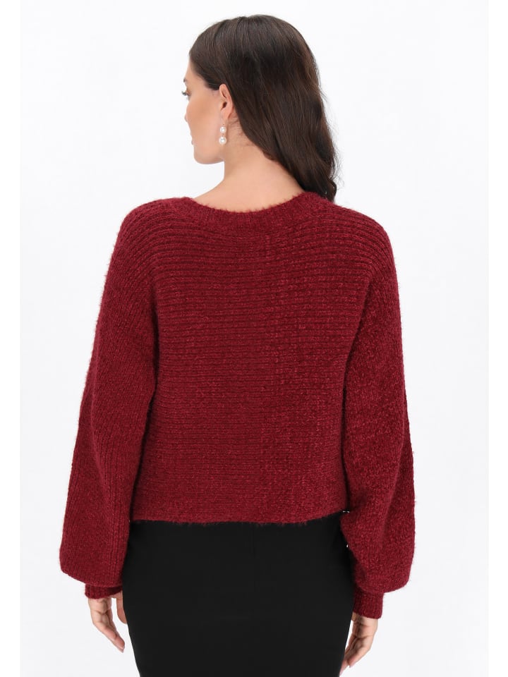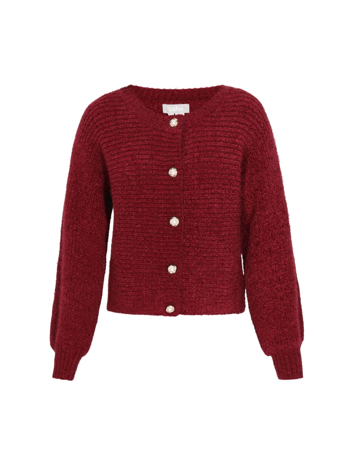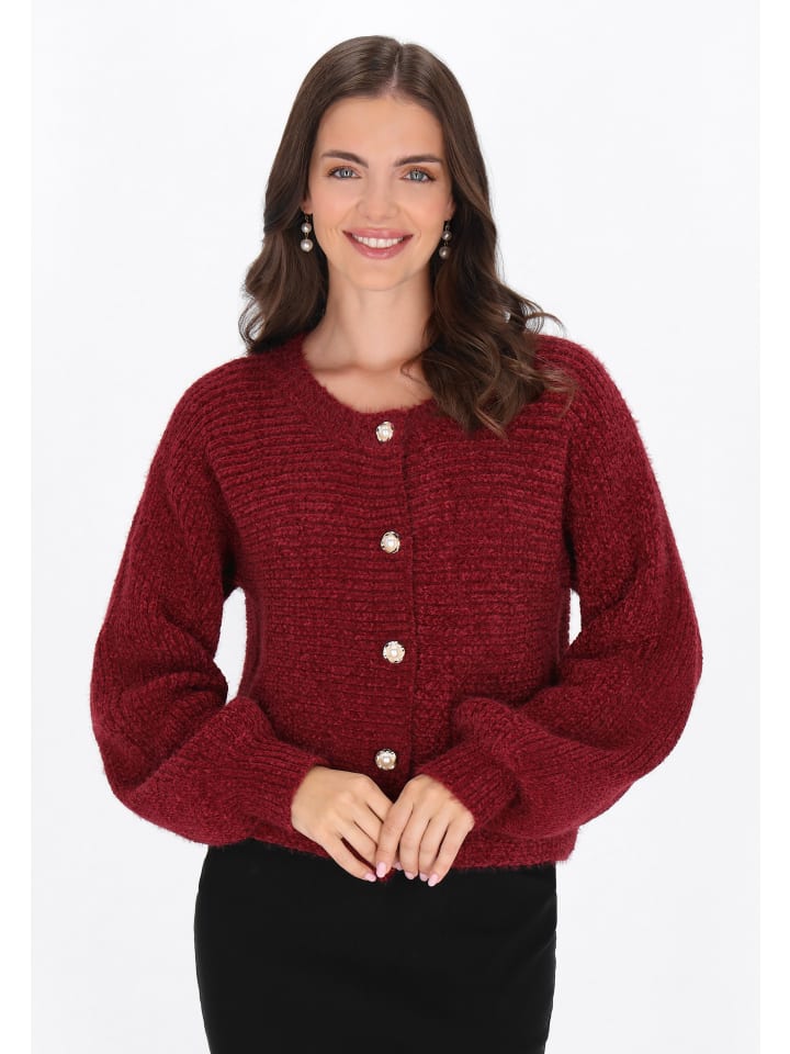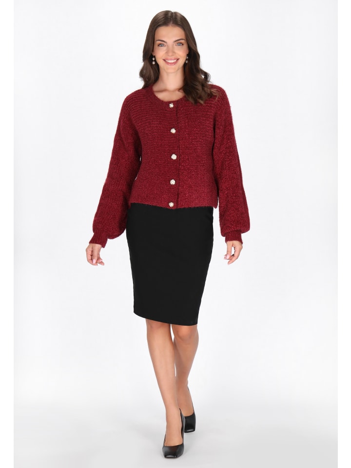 - Кардиган прямого кроя с круглым вырезом и длинными рукавами-бишоп