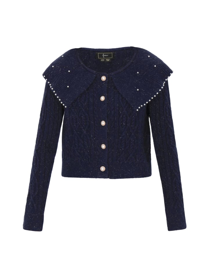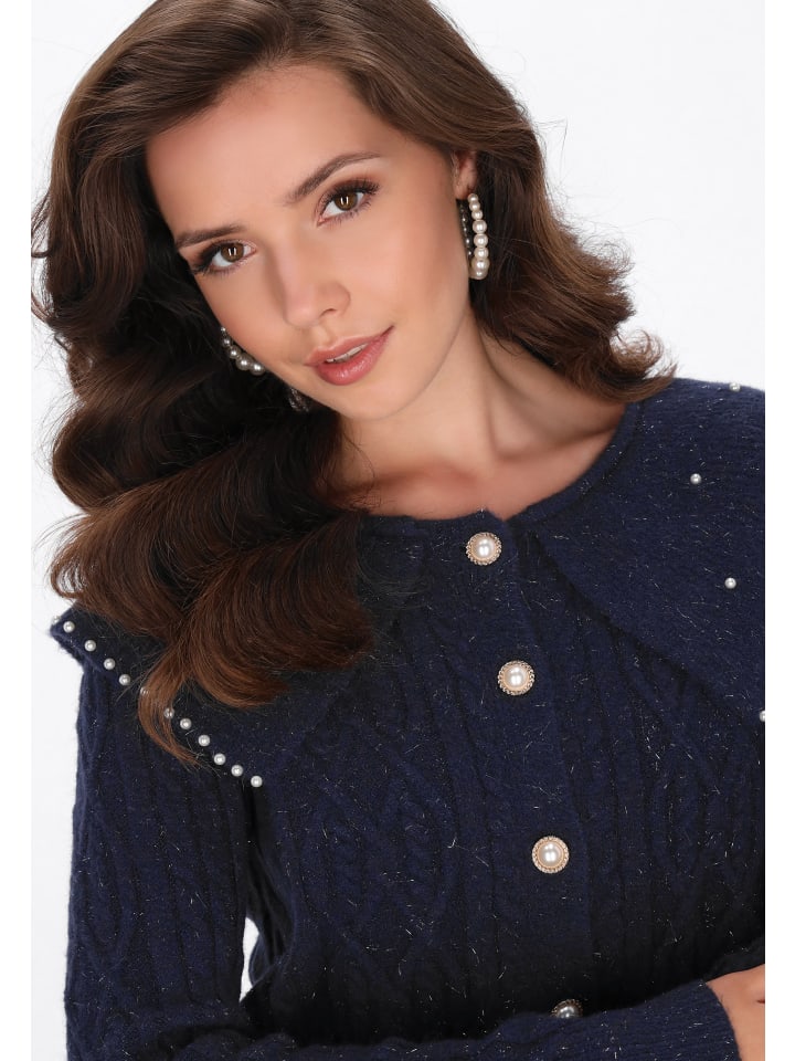 Стильный кардиган прямого кроя - это уникальное сочетание классики и девичьего очарования. Изготовленный из мягкого трикотажа с декоративным клетчатым переплетением, он впечатляет деталями: элегантным пуританским воротником, блестящей металлической нитью и декоративными жемчужными пуговицами. Длинные рукава и удобный крой делают его идеальным выбором на каждый день - с джинсами, юбками или платьями. Кардиган сочетает в себе комфорт и утонченную элегантность, идеально вписываясь в повседневный стиль с ноткой романтики. Он входит в коллекцию Fashion Look.