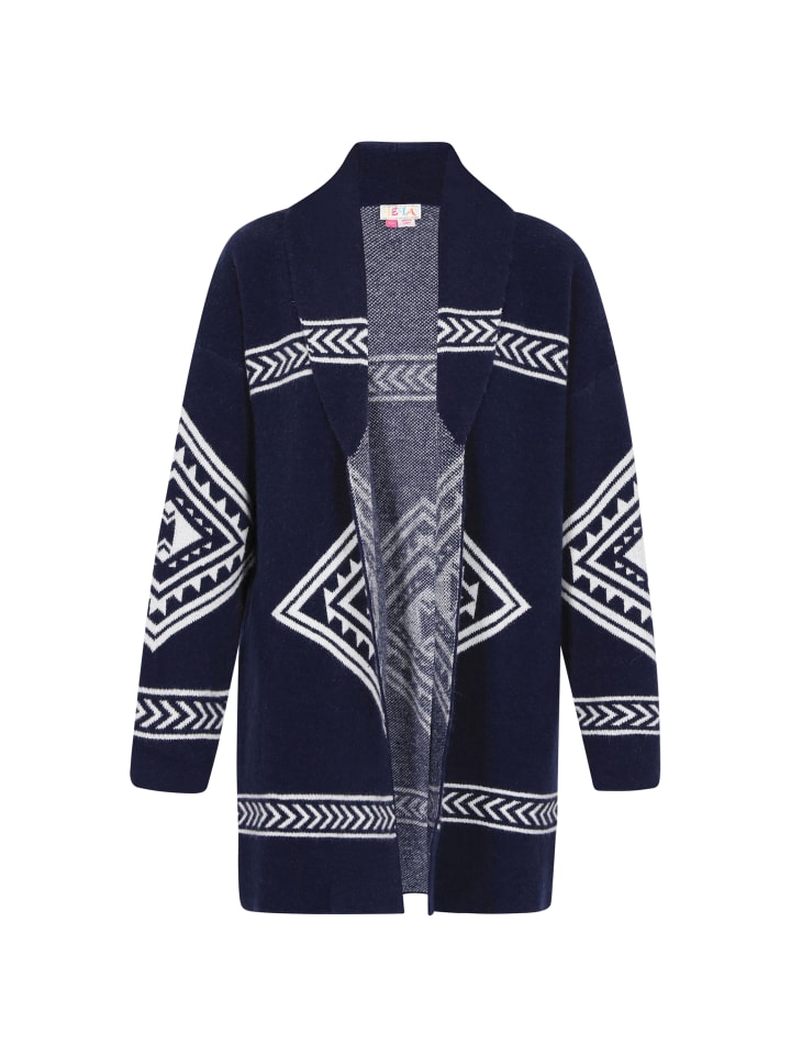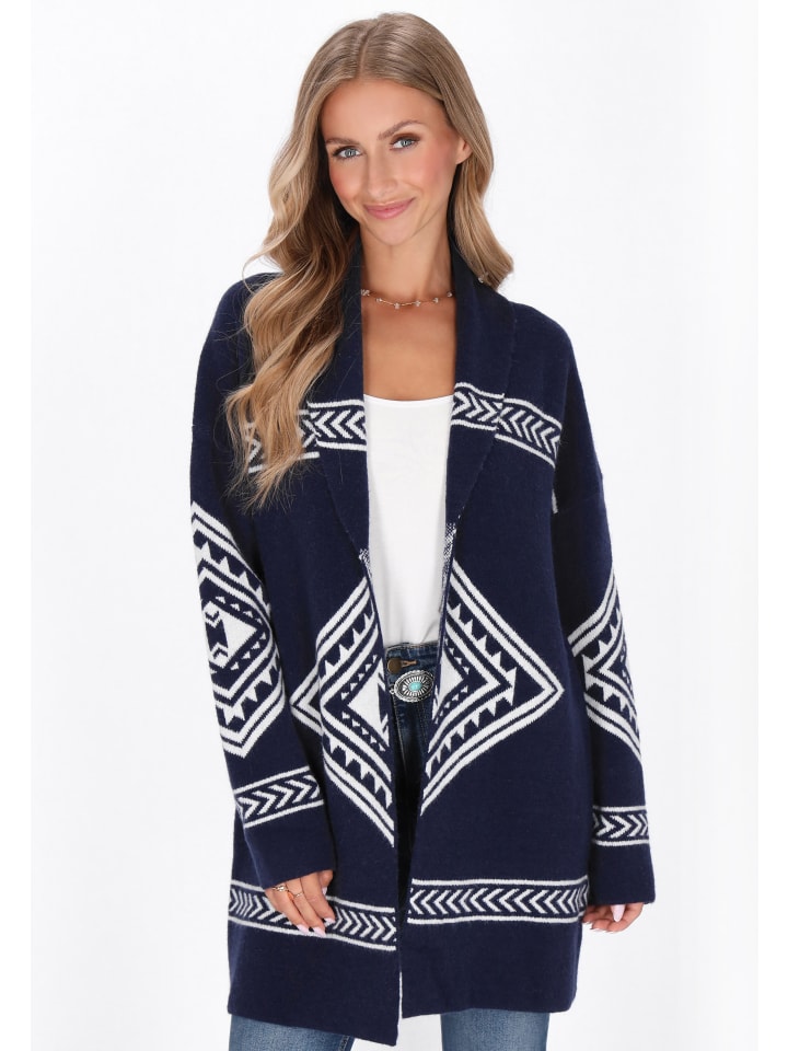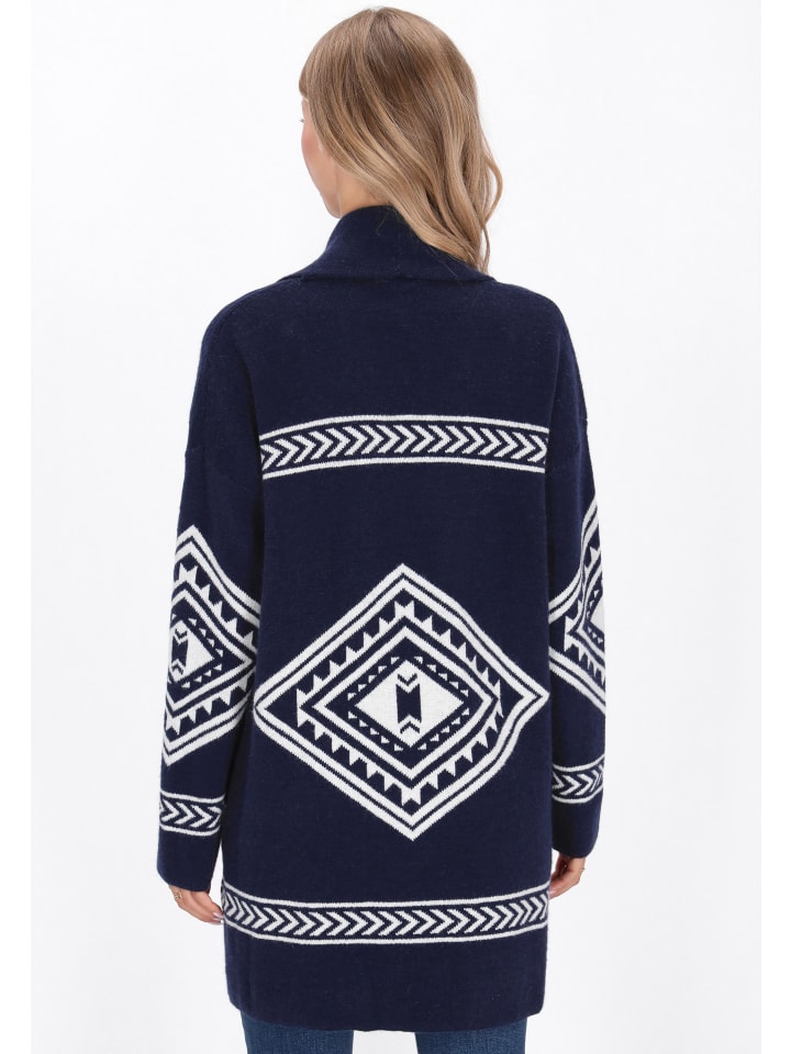 Окутайте себя уютным очарованием этого свободного кардигана из нашей коллекции Boho. Мягкий шалевый воротник, длинные рукава и спущенное плечо создают непринужденный и непринужденный стиль. Изготовленный из теплого трикотажа с эффектным ацтекским узором, этот кардиган добавит богемного нотки в ваш повседневный образ - идеальное дополнение к многослойной одежде в прохладные дни, обеспечивая комфорт и стиль.