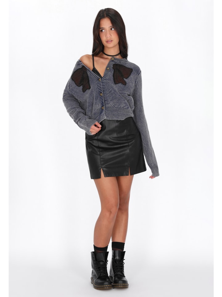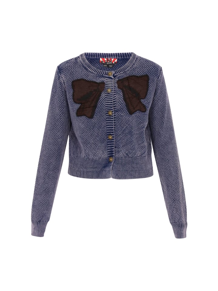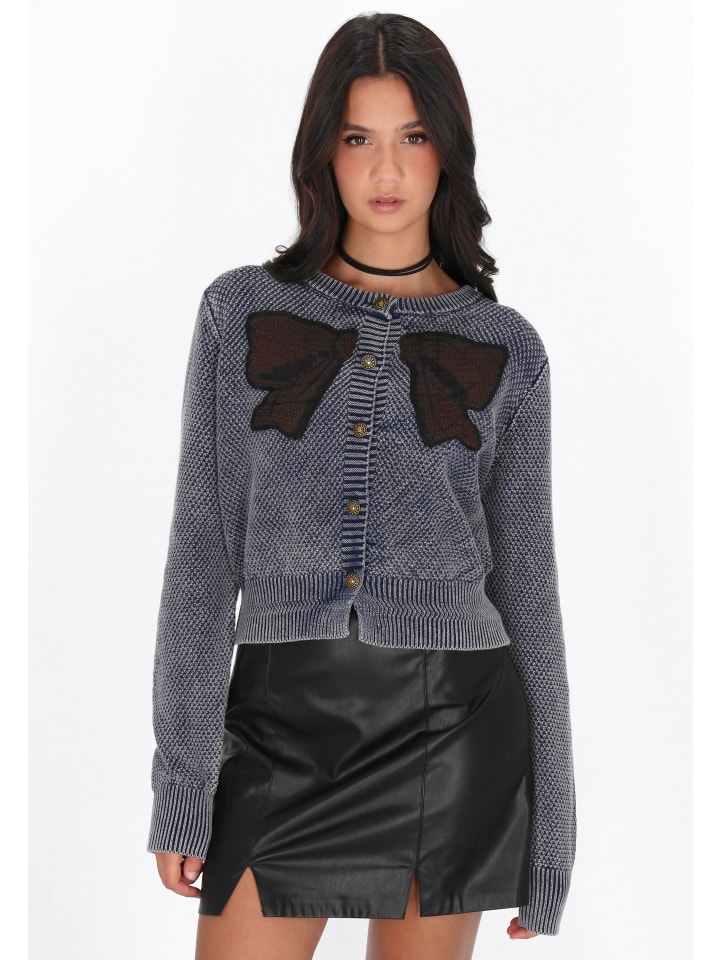 Этот уникальный кардиган из коллекции Mymo Rocks сочетает в себе классику и рок-стиль. Изготовленный из мягкого трикотажа с вафельной текстурой, он обеспечивает комфорт в течение всего дня. Классический крой, круглый вырез горловины, длинные рукава и классическая застежка на пуговицы создают вневременную основу, которую разбавляет легкий бант и эффект потертости, добавляя индивидуальности. Идеально подходит для повседневного образа с нотками рок-стиля - носите с джинсами или тяжелыми ботинками.