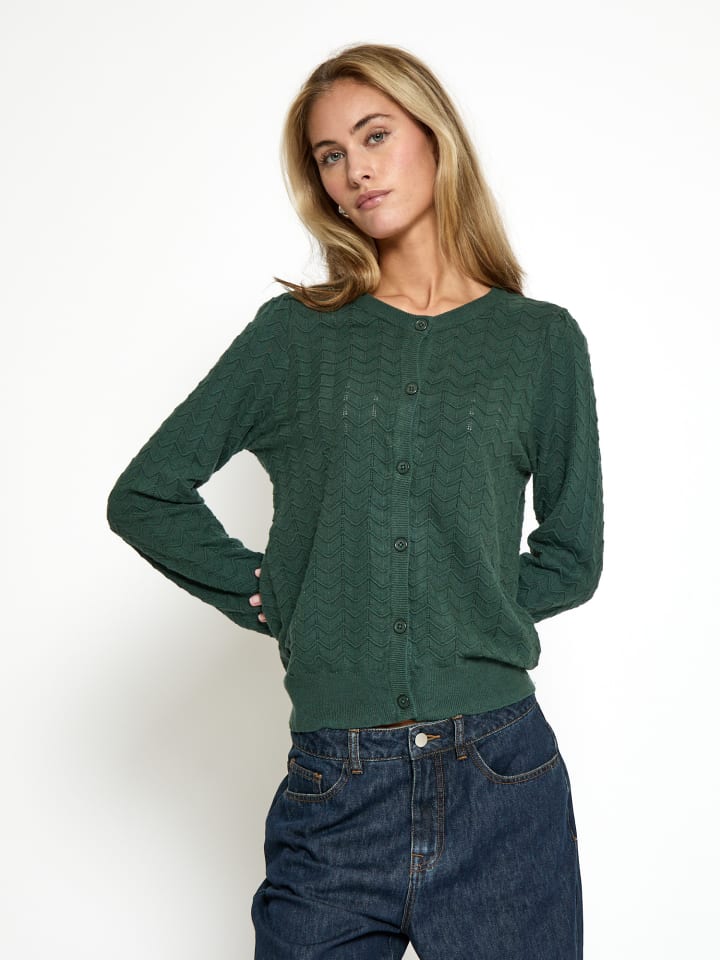 Пополните свой гардероб кардиганом PCRosy от Peppercorn - шедевром утонченной элегантности и комфорта. Изготовленный из высококачественной вискозы LENZING ECOVERO, этот кардиган обладает исключительно мягкой текстурой, которая дарит ощущение роскоши. Элегантный круглый вырез горловины добавляет нотку классической изысканности, а длинные рукава тщательно продуманы для идеальной драпировки и изысканного вида. Сложный вязаный узор добавляет легкий намек на текстуру, делая этот кардиган эффектным предметом гардероба для любого случая. Его легко сочетать с брюками строгого кроя для создания элегантного офисного образа или поверх простого платья для поездки на выходные.