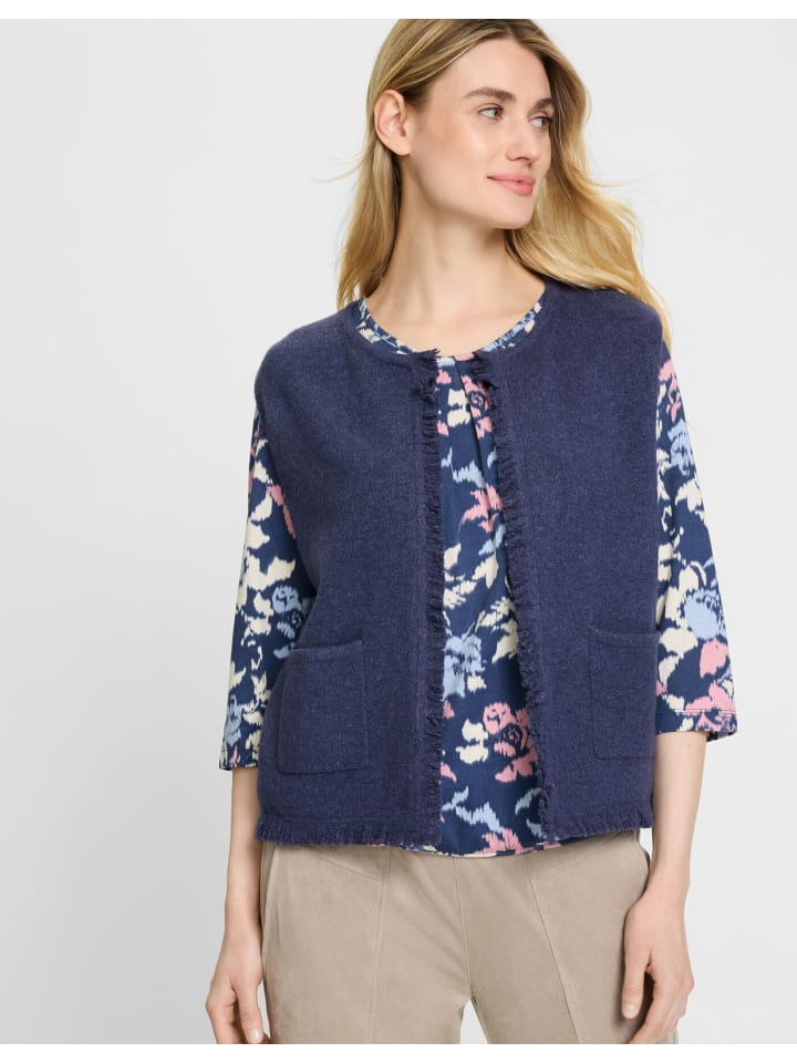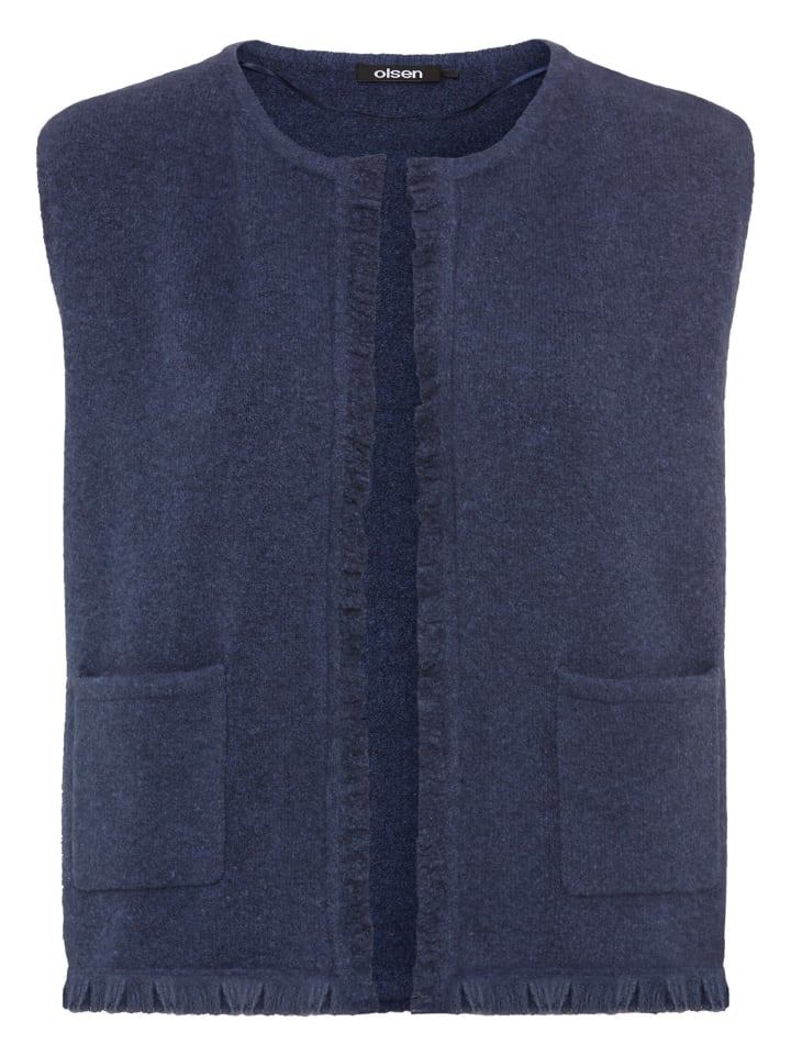 Модная изюминка в стиле бохо: этот кардиган без рукавов идеально подходит для создания многослойных образов в переходном стиле. Открытый перед и модная бахрома по подолу создают современный женственный образ. Кардиган кроя «Хенни» от Olsen удобно драпируется, не стесняя движений. Шерстяная смесь обеспечивает исключительный комфорт и высокое качество. Длина около 52 см.