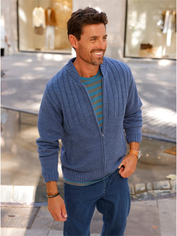 Идеально подходит для активного отдыха: кардиган на удобной подкладке с характерной ребристой текстурой на плечах. Застежка-молния во всю длину. Два косых кармана на молнии. Эластичные ребристая резинка на манжетах и подоле. Один внутренний карман на пуговице. Меланжевая ткань, не требующая особого ухода.