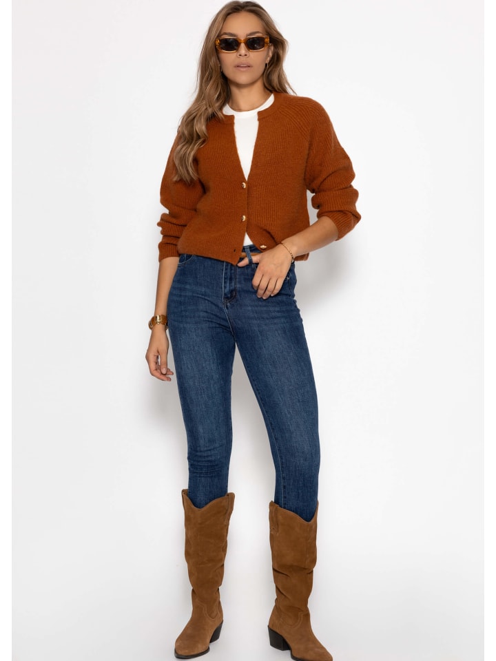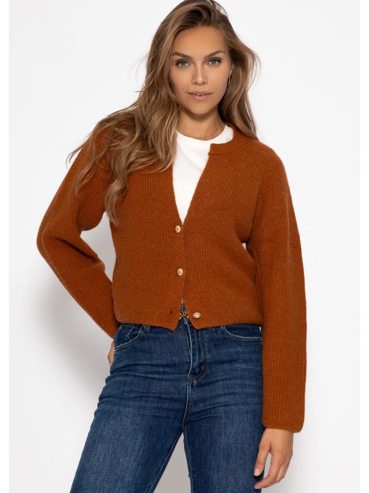 Коричневый кардиган с V-образным вырезом SASSYCLASSY