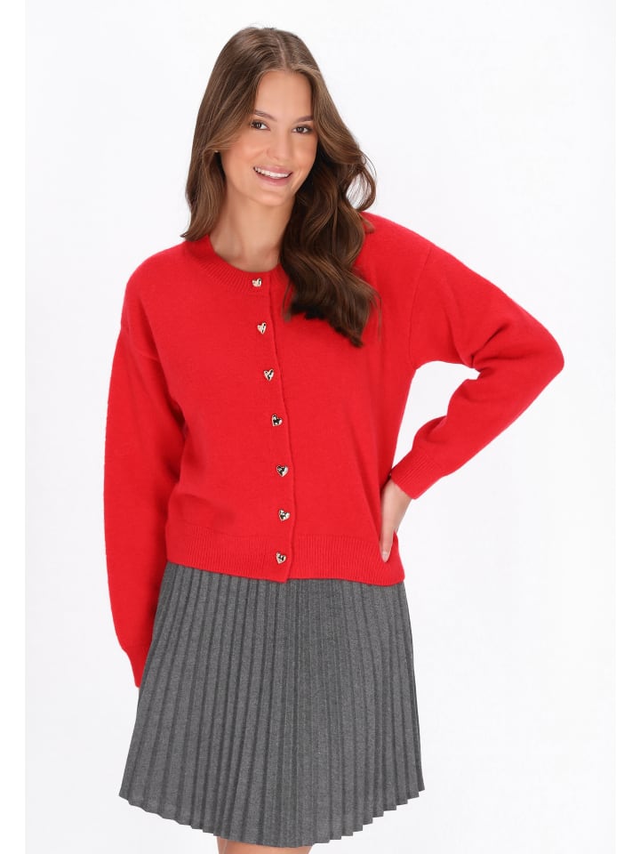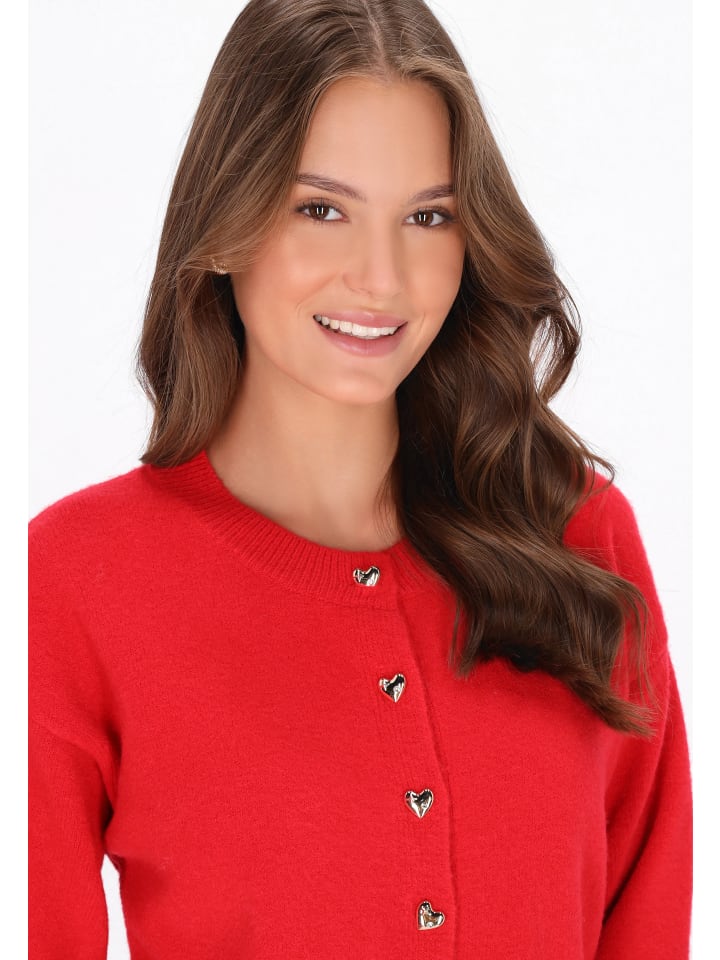 Почувствуйте себя комфортно в этом уютном кардигане свободного кроя с круглым вырезом. Длинные рукава и спущенная линия плеча подчеркивают непринужденный вид, а декоративные пуговицы добавляют очарования простому крою. Этот трикотажный предмет из коллекции Young Fashion идеально подходит для повседневной носки, а вы можете добавить стильный штрих, надев его с любимой юбкой.