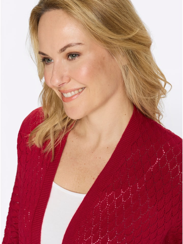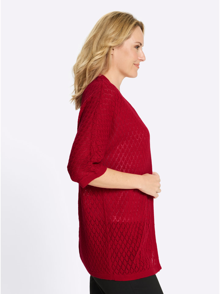 Этот красивый кардиган с легким ажурным узором - незаменимая вещь в вашем гардеробе! Свободный, удлиненный крой создает привлекательный силуэт. Изящные рукава «летучая мышь» длиной три четверти, а также ребристые манжеты и низ.