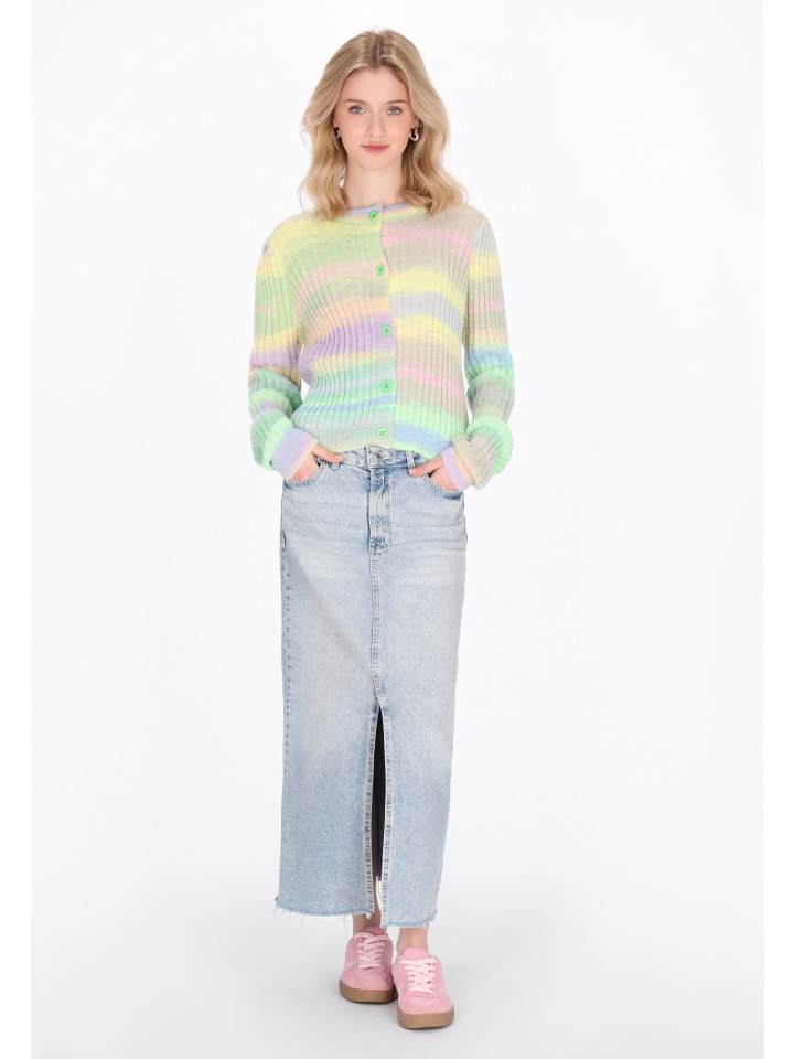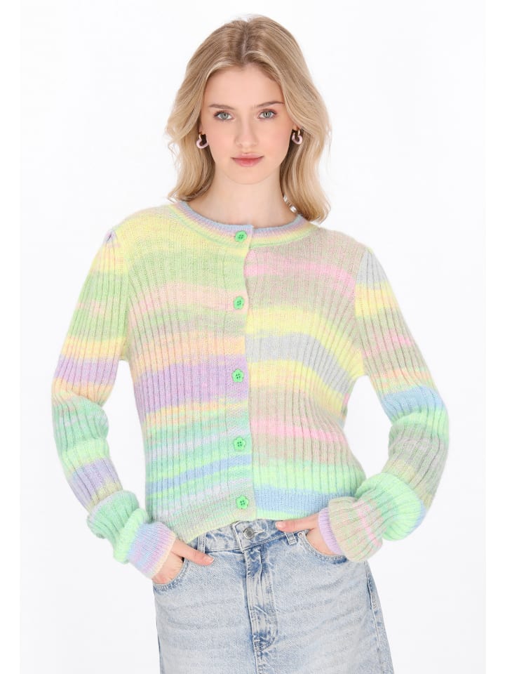 Дополните свой гардероб этим модным кардиганом прямого кроя. У него круглый вырез горловины и длинные рукава, а декоративные пуговицы придают ему очарование. Кардиган из мягкой трикотажной ткани с эффектом омбре создает стильный образ и идеально подходит для повседневных прогулок. Этот кардиган входит в коллекцию Young Fashion.