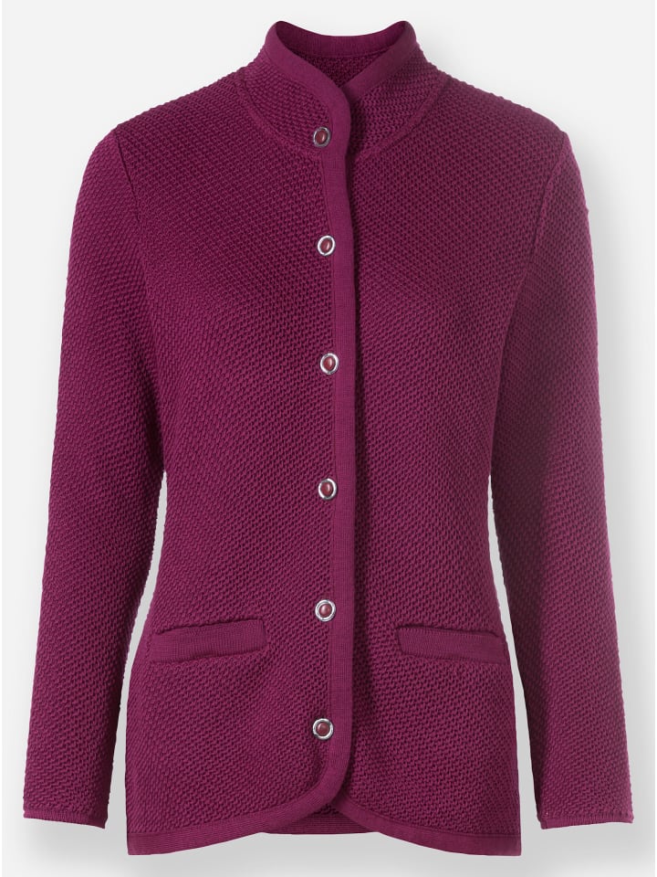Высококачественный кардиган из мериносовой шерсти с замысловатым узором «жемчужная гладь» - идеальная альтернатива блейзеру. Воротник-стойка и подол закругленные, с аккуратной окантовкой. Два встроенных кармана.