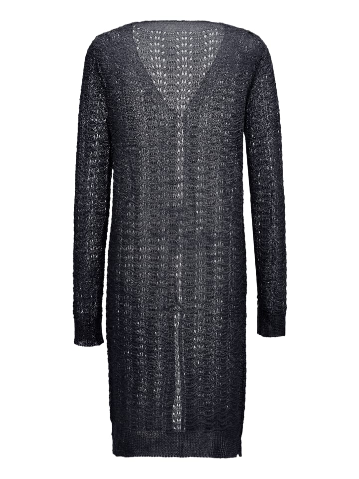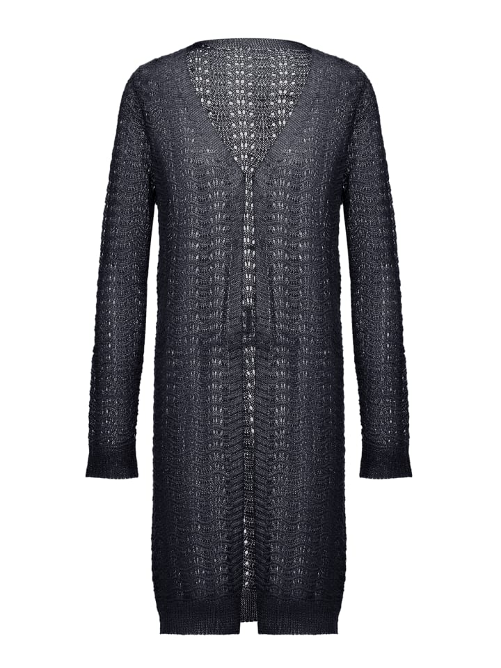 Украсьте свой гардероб этим изысканным кардиганом с длинными рукавами. V-образный вырез и открытый перед, а ребристая текстура на манжетах и подоле добавляет нотку элегантности. Вязаный узор сочетает кружевные детали с однотонными текстурами, создавая уникальный полосатый эффект. Этот кардиган длиной до середины бедра идеально подходит для многослойного ношения, он стильный и уютный, идеально добавит тепла и изящества любому образу. Разработанный совместно с ZITHA, этот кардиган сочетает в себе классический стиль и современный дизайн.