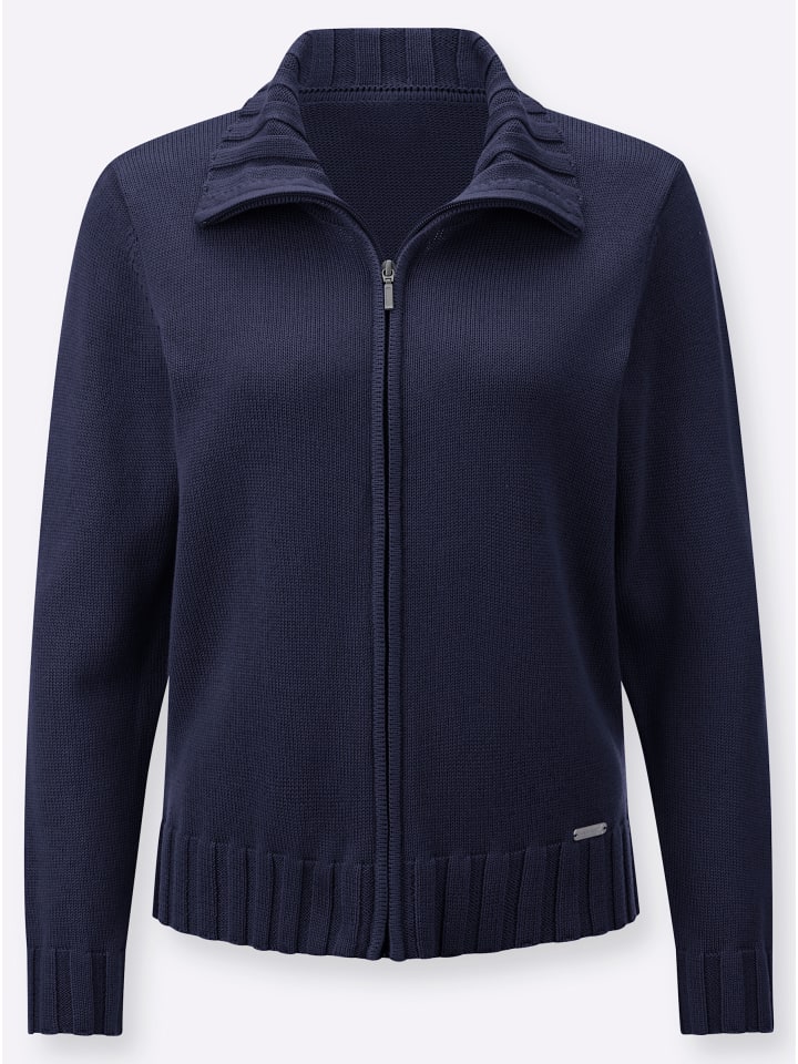 Настоящий универсал: мягкий кардиган! Отложной воротник, длинные рукава и подол отделаны широкими манжетами в рубчик. Застежка-молния по всей длине. Высококачественный фасонный трикотаж. Соответствует инициативе «Сделано в Африке» (Cat. Made in Africa).