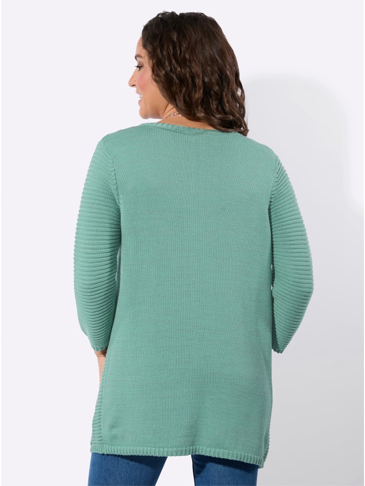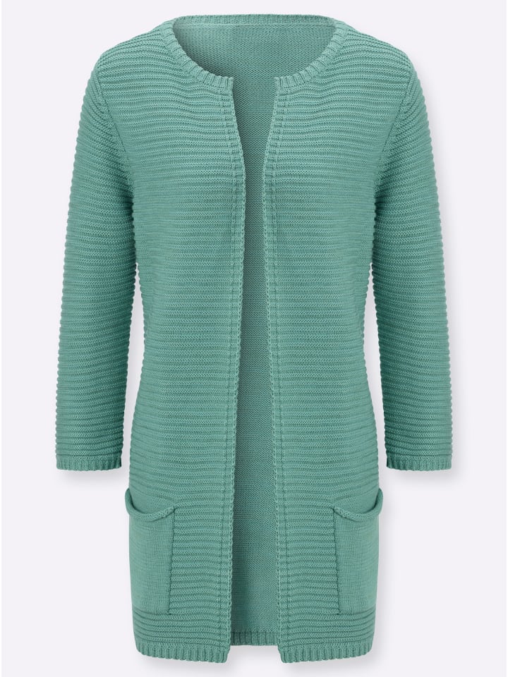 Непринужденный кардиган без рукавов с привлекательным рисунком спереди и на рукавах. Два накладных кармана. Слегка удлиненный крой выгодно подчеркивает фигуру. В поддержку инициативы «Хлопок, сделанный в Африке».
