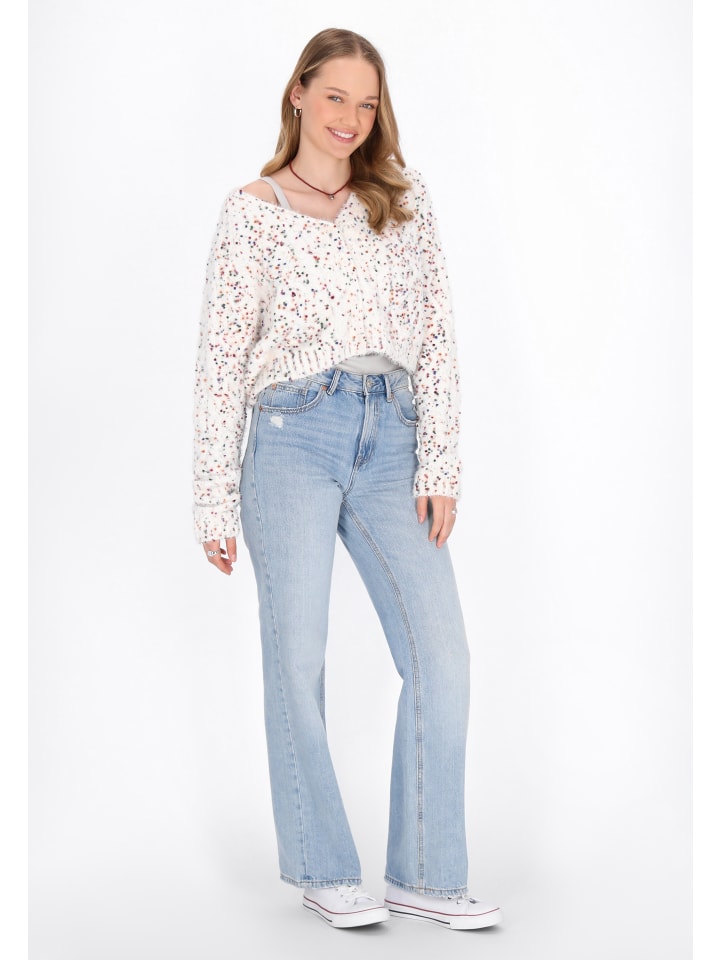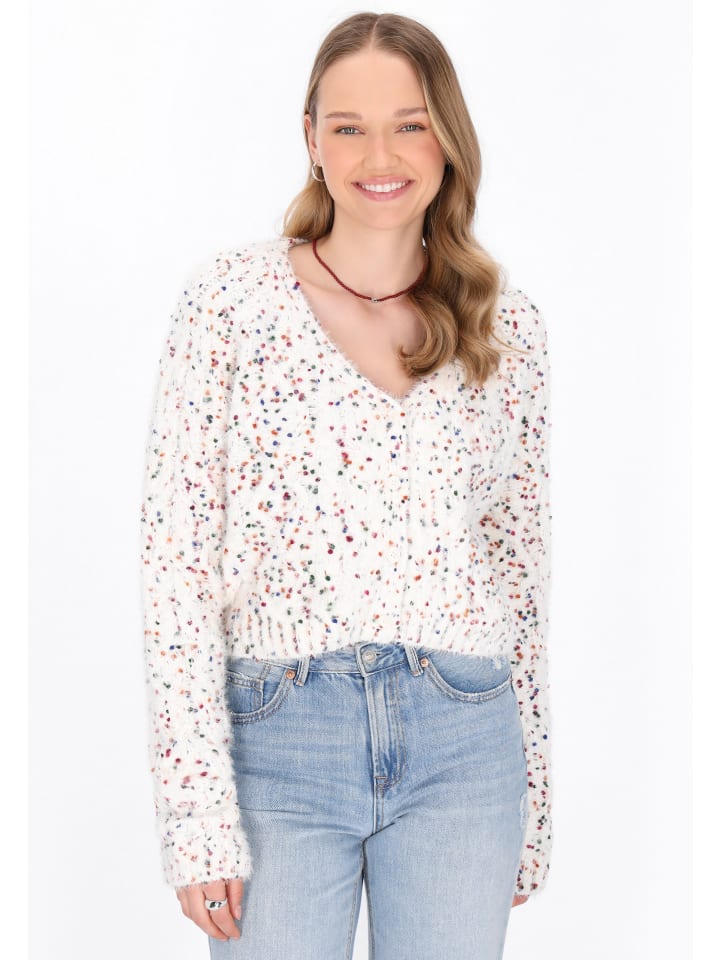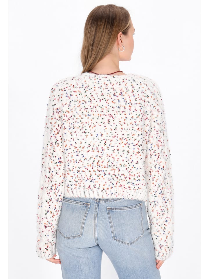Этот модный кардиган - идеальный выбор для тех, кто ценит комфорт и стиль. Изготовленный из мягкой трикотажной пряжи разноцветного меланжа, он впечатляет своим оригинальным дизайном и характерным переплетением нитей. Классический крой, вырез горловины в форме сердца и длинные рукава делают его идеальным для повседневного ношения. Застежка на пуговицы добавляет ему классического очарования. Незаменимая вещь