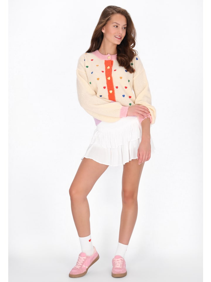 Этот очаровательный вязаный кардиган из коллекции Young Fashion - идеальный выбор для подготовки к школе. Он сочетает в себе модную непринужденность, комфорт и девичье очарование в одном стильном дизайне. Свободный крой, круглый вырез горловины, длинные рукава с небольшими буфами и спущенные плечи создают непринужденный, слегка свободный образ. Застежка на пуговицы добавляет классический штрих, а нежная вышивка в виде сердечек - милый и романтичный штрих. Изготовленный из мягкого, приятного на ощупь трикотажа, этот кардиган идеально подходит для прохладных дней - школы, встреч или просто повседневной носки. Мягкий, стильный и очаровательный - незаменимая вещь в гардеробе молодой женщины.
