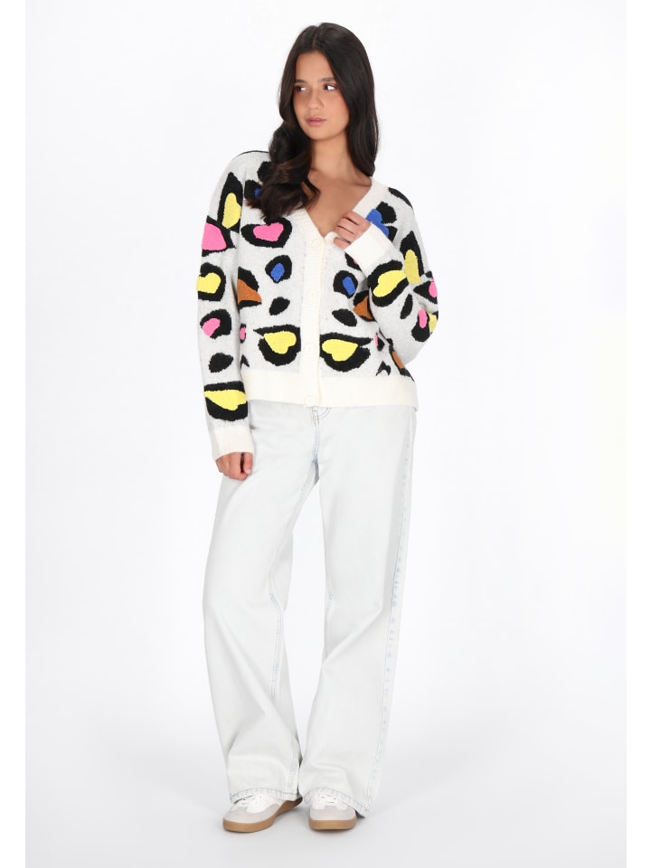 Выберите непринужденный и модный образ с этим вязаным кардиганом из коллекции Young Fashion. Свободный крой, вырез в форме сердца и длинные рукава со спущенной линией плеча создают удобную и стильную посадку. Застежка на пуговицы добавляет классический штрих, а леопардовый принт привлекает внимание и подчеркивает модный стиль. Идеально подходит для повседневного ношения - будь то с джинсами или платьем. Милый, удобный и абсолютно в тренде!