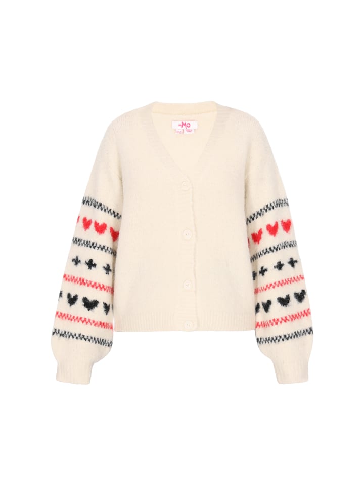 Стильный и очаровательный кардиган в стиле casual. Свободный крой с V-образным вырезом идеально сочетает в себе комфорт и молодежный стиль. Длинные рукава-фонарики и спущенные плечи придают ему непринужденный и модный вид. Кардиган связан трикотажем, застегивается на пуговицы и украшен нежным узором в виде сердечек, что добавляет ему очарования и девичьей грации. Это невероятно удобный и уютный вариант на каждый день - идеально сочетается с джинсами, юбками и платьями. Идеально подходит для тех, кто ценит непринужденный образ с ноткой милого стиля. Из коллекции Young Fashion.
