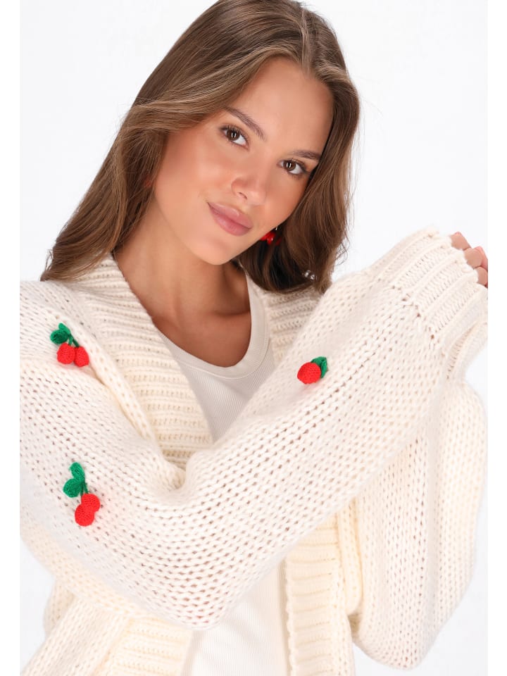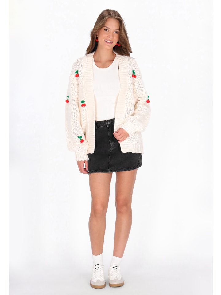 Стильный и удобный кардиган свободного кроя, идеально подходящий для повседневной носки. Благодаря открытому переду, длинным рукавам и спущенной линии плеча, этот кардиган сочетает в себе комфорт и непринужденный стиль. Изготовленный из мягкого трикотажа, он украшен изящной вышивкой в виде вишни, которая добавляет ему очарования и женственности. Это уютный, комфортный и модный выбор для повседневного ношения - он хорошо сочетается с джинсами, юбками и платьями, подчеркивая ваш молодой и очаровательный образ. Из коллекции Young Fashion.