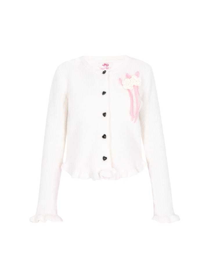 Очаровательный и удобный кардиган, идеально подходящий для повседневных образов. Кардиган с классическим круглым вырезом и длинными рукавами застегивается на пуговицы, а также декоративными пуговицами и оборкой, что добавляет ему утонченного девичьего штриха. Изготовленный из мягкой трикотажной ткани, он украшен нежным цветочным мотивом и простым, незамысловатым узором. Это уютный, стильный и комфортный выбор на каждый день - он хорошо сочетается с джинсами, юбками и платьями, подчеркивая очаровательный и молодой образ. Этот кардиган входит в коллекцию Young Fashion.