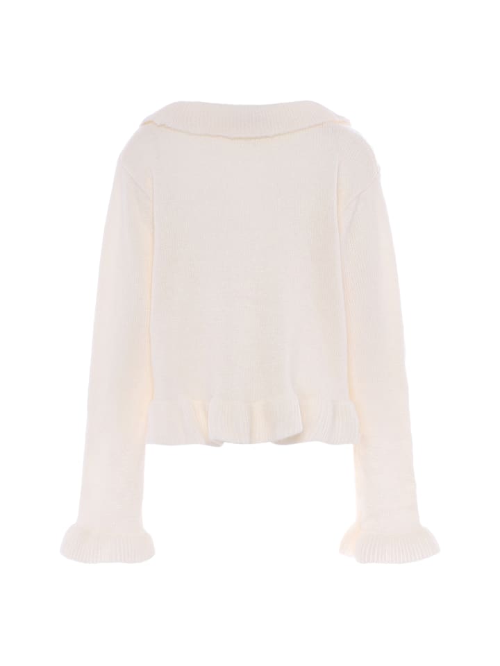 Этот женский кардиган Aleva впечатляет двойным V-образным вырезом и каскадными оборками. Он завязывается на завязку, а округлые манжеты в рубчик завершают образ. Этот кардиган, разработанный совместно с Aleva, сочетает в себе классический стиль и современный дизайн.