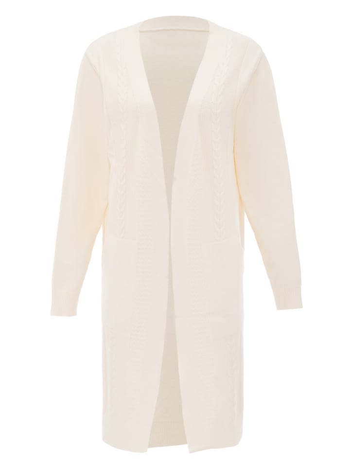Украсьте свой гардероб этим элегантным кардиганом длиной до колена. Ребристая текстура на манжетах и подоле, а также изысканная отделка косичками спереди создают изысканный образ. Свободный крой и прямой силуэт обеспечивают стиль и комфорт, а встроенные карманы добавляют функциональности этому уютному изделию. Разработанный совместно с ALARY, этот кардиган сочетает в себе классический стиль и современный дизайн.