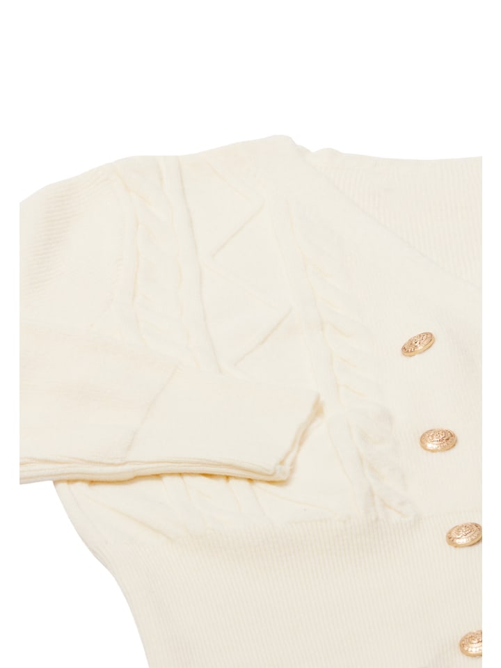 Этот элегантный вязаный кардиган с V-образным вырезом и двубортным передом с двумя рядами пуговиц. Длинные рукава и ребристые манжеты дополнены узором «косички» спереди для дополнительной фактуры. Эффектные пуговицы создают смелый контраст, гармонично сочетая повседневный и деловой стиль, делая этот кардиган универсальным для любого случая. Разработанный совместно с NAEMI, этот кардиган сочетает в себе классический стиль и современный дизайн.