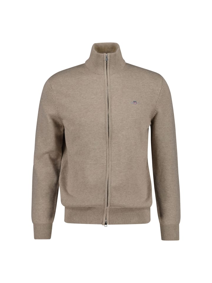 Простой кардиган на молнии от GANT. Тонкая вязка из чистого хлопка, ребристые манжеты, вышитый логотип, классический крой.