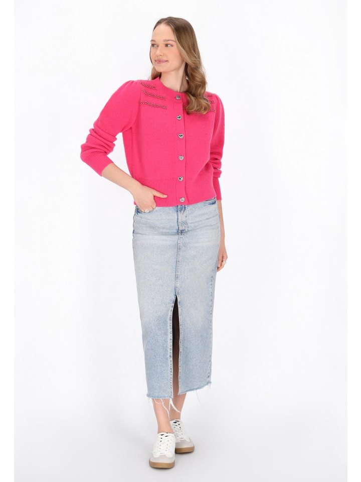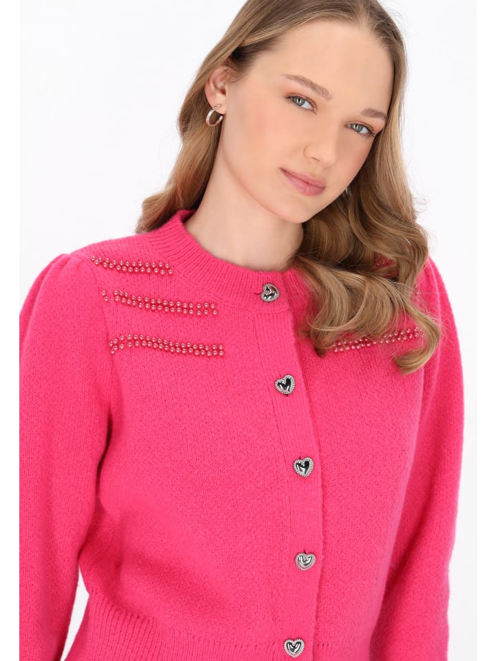 Откройте для себя очарование романтического стиля с нашим кардиганом из коллекции Young Fashion. Этот кардиган прямого кроя сочетает в себе комфорт и женственность. Классический круглый вырез и длинные рукава делают его идеальным вариантом для повседневной носки. Застежка на пуговицы и декоративные пуговицы с жемчугом добавляют элегантности. Трикотаж и гладкий узор обеспечивают комфорт и универсальность. Идеальный выбор для любительниц непринужденных, очаровательных образов с ноткой романтики.