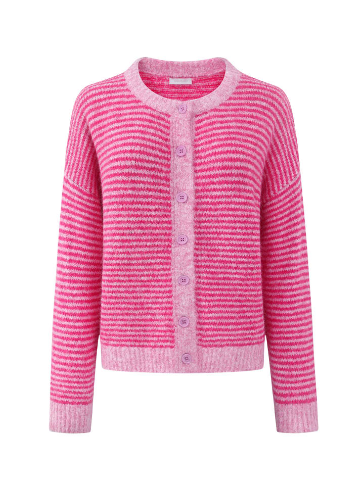 - ДИЗАЙН: Современный трикотажный кардиган с контрастными полосками, планкой на пуговицах и круглым вырезом - создает свежий, женственный образ