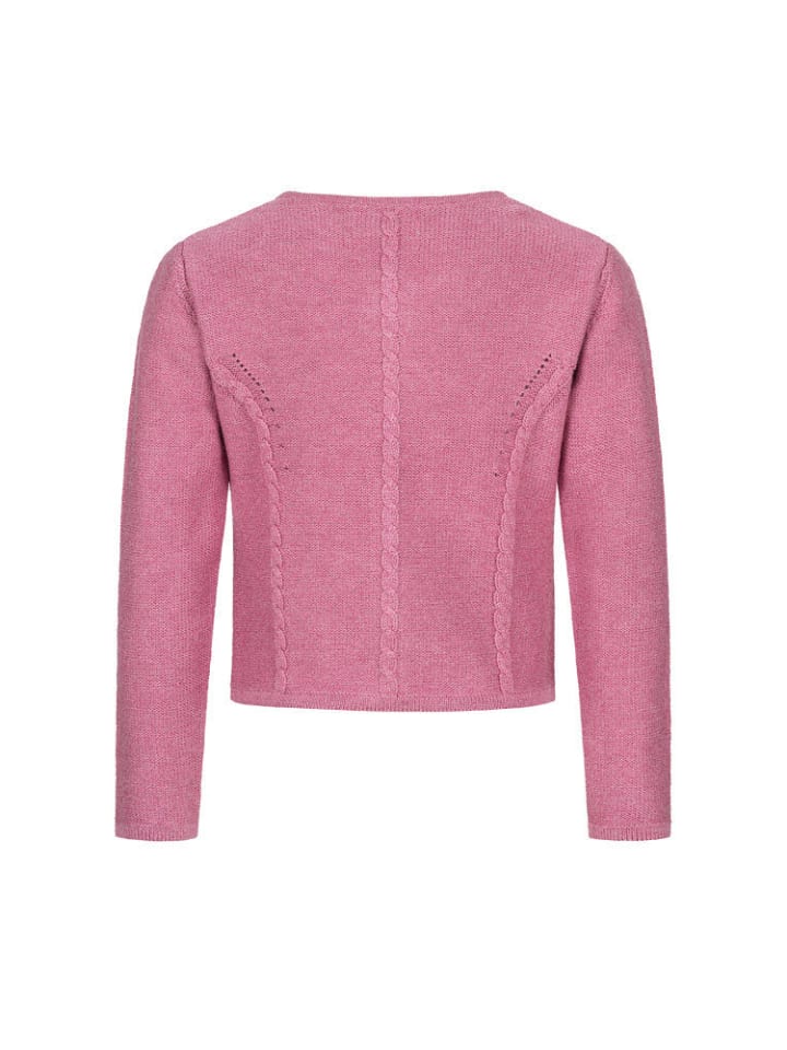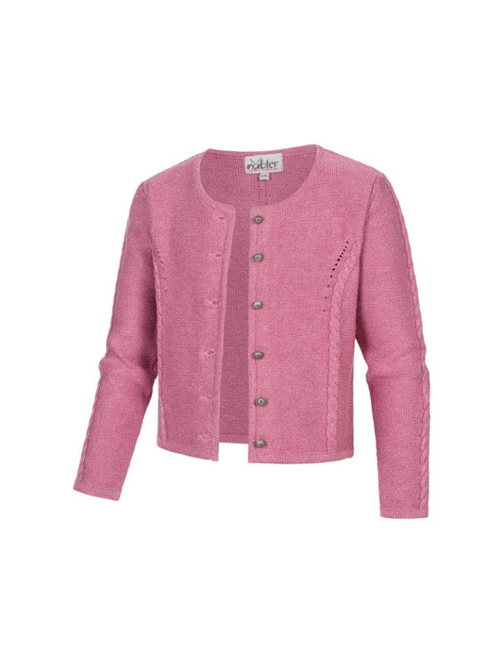 Этот восхитительный розовый кардиган Amira Madl идеально подходит для прохладных дней или теплых летних вечеров. Кардиган застегивается спереди на красивые металлические пуговицы. Изящные косички спереди, на спинке и рукавах придают ему особый шарм. Передняя часть дополнена изящным ажурным узором. Этот кардиган универсален и хорошо сочетается с повседневными брюками, дирндлем или юбкой. Совет: чтобы шерстяные кардиганы не потеряли форму, не сушите их на вешалке. Инструкции по уходу: машинная стирка при 30°C в деликатном режиме, глажка при низкой температуре. Состав: 50% хлопок, 50% полиакрил.