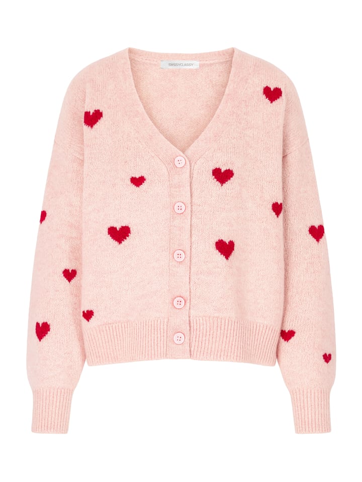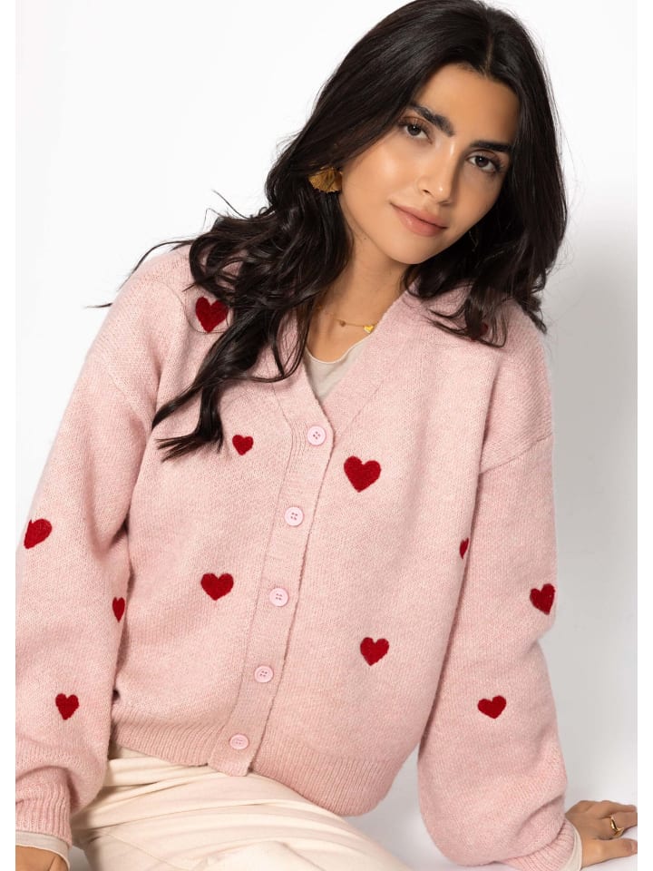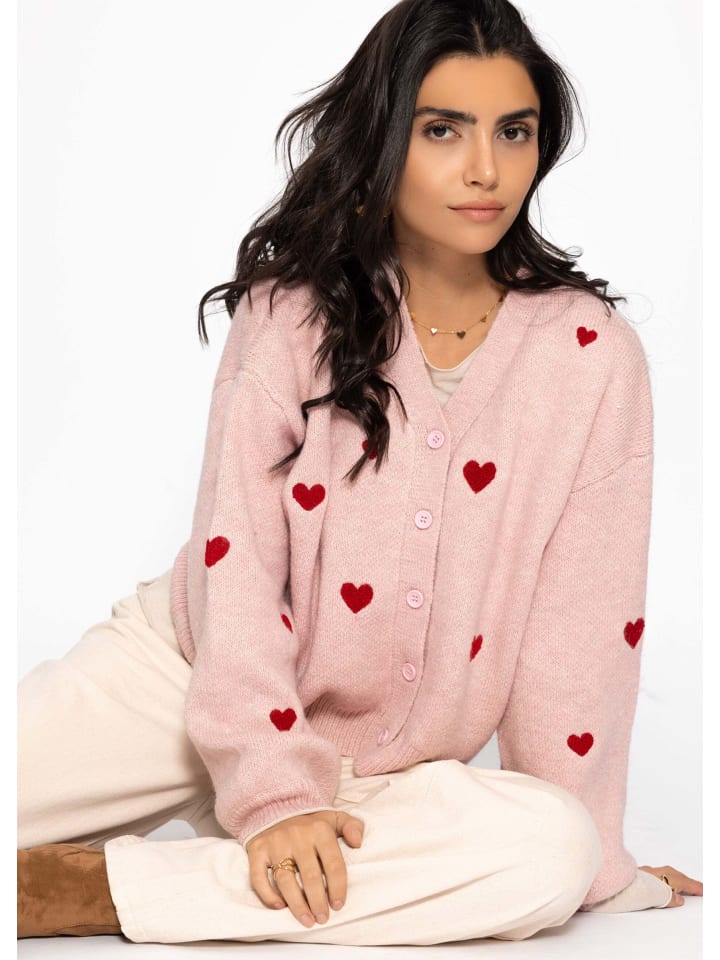 Кардиган с красными сердечками в розовом цвете SASSYCLASSY