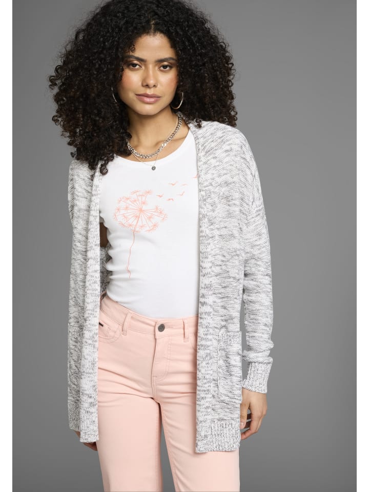 Когда погода холодает, меланжевый кардиган от KangaROOS выходит на сцену. Этот кардиган с шалевым воротником прикрывает бедра и имеет свободный крой. Длинные рукава и подол отделаны резинкой. Ценные вещи можно безопасно хранить в карманах. Кардиган невероятно удобный и теплый. Он дополнит классический офисный образ или создаст уютный образ для отдыха на диване.