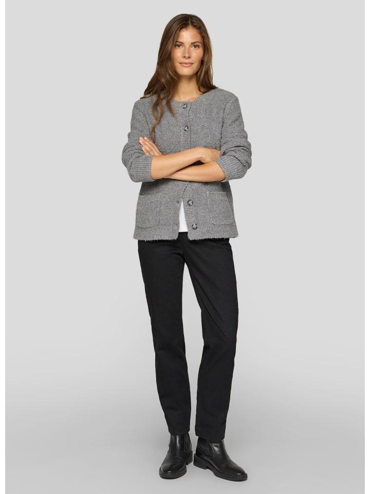 Этот классический кардиган впечатляет своим простым дизайном и очаровательными деталями. Круглый вырез горловины, планка с пуговицами и два накладных кармана создают гармоничный образ. Ребристые манжеты по подолу, рукавам и карманам подчеркивают элегантный вид - идеально подходит для универсальных повседневных образов.