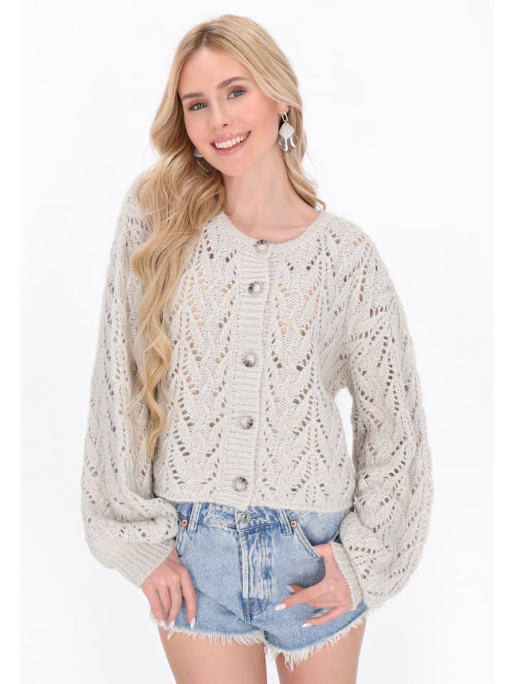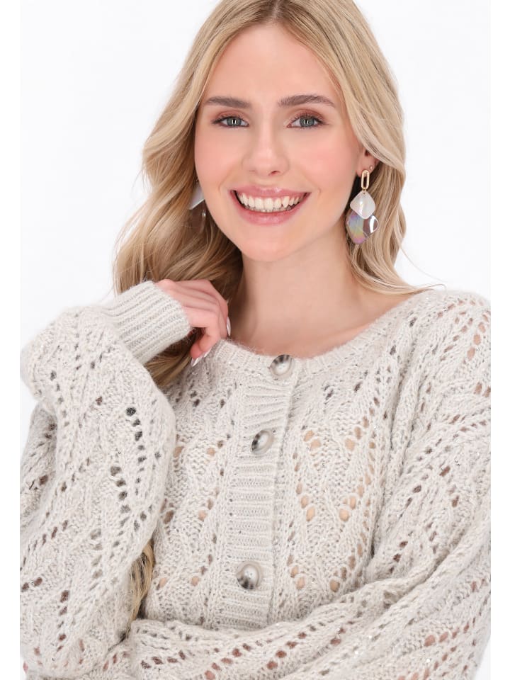 Обновите свой гардероб этим стильным кардиганом свободного кроя с круглым вырезом. Кардиган с длинными рукавами и спущенной линией плеч имеет элегантную застежку на пуговицы спереди. Ажурный вязаный узор с добавлением металлизированной нити привнесет непринужденный и комфортный штрих в модные образы, сделав его незаменимой вещью в гардеробе каждой модницы. Этот кардиган входит в коллекцию Fashion Look.