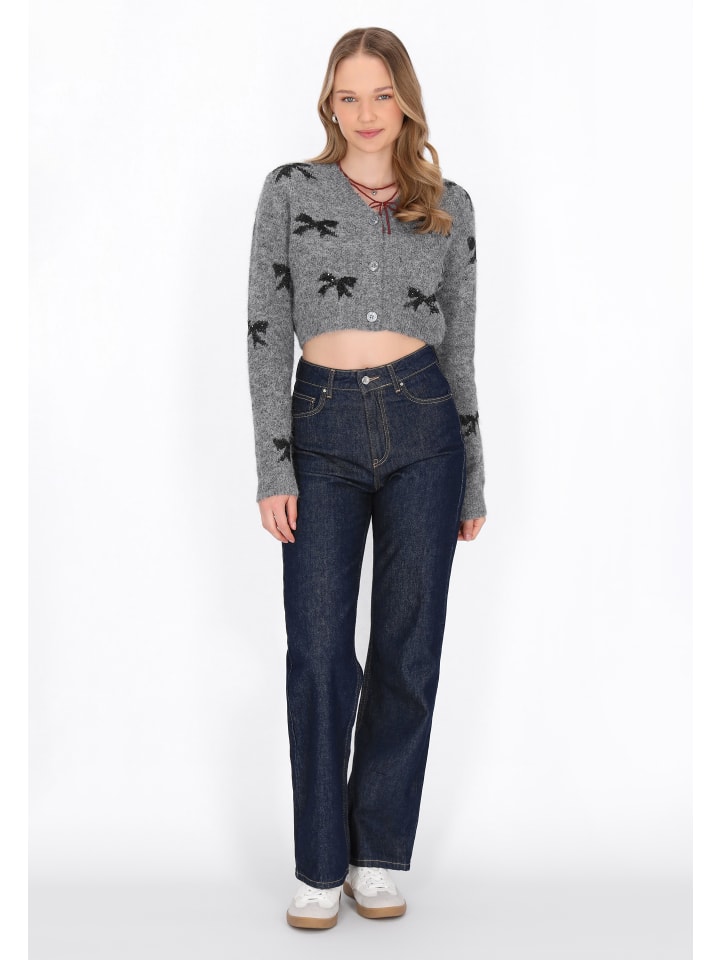Добавьте изюминку в свой повседневный образ с этим кардиганом из коллекции Young Fashion. Короткий кардиган свободного кроя с V-образным вырезом и длинными рукавами