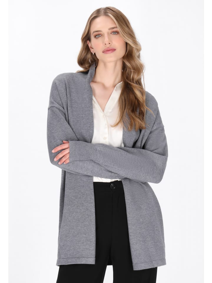 - Кардиган свободного кроя с открытым передом и длинными рукавами