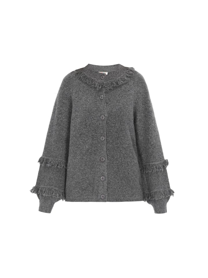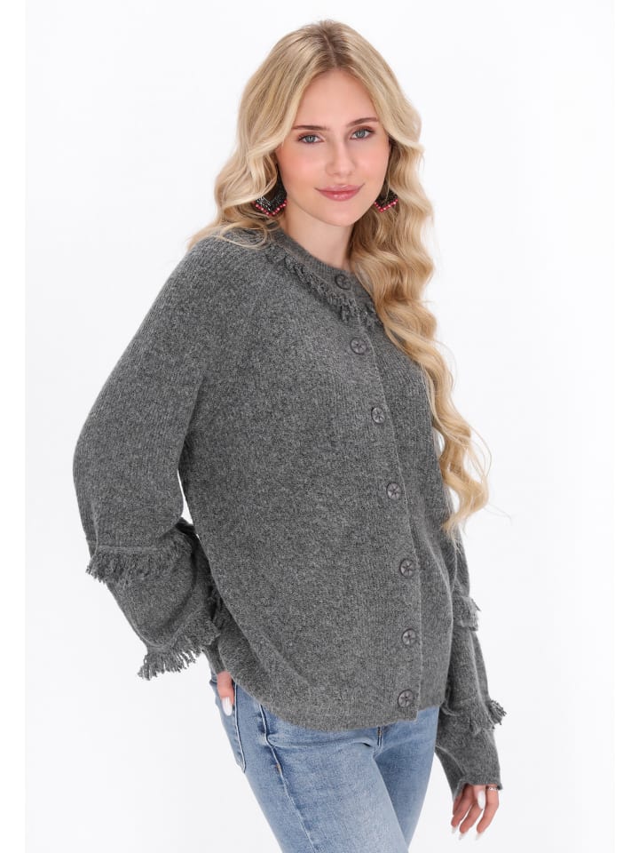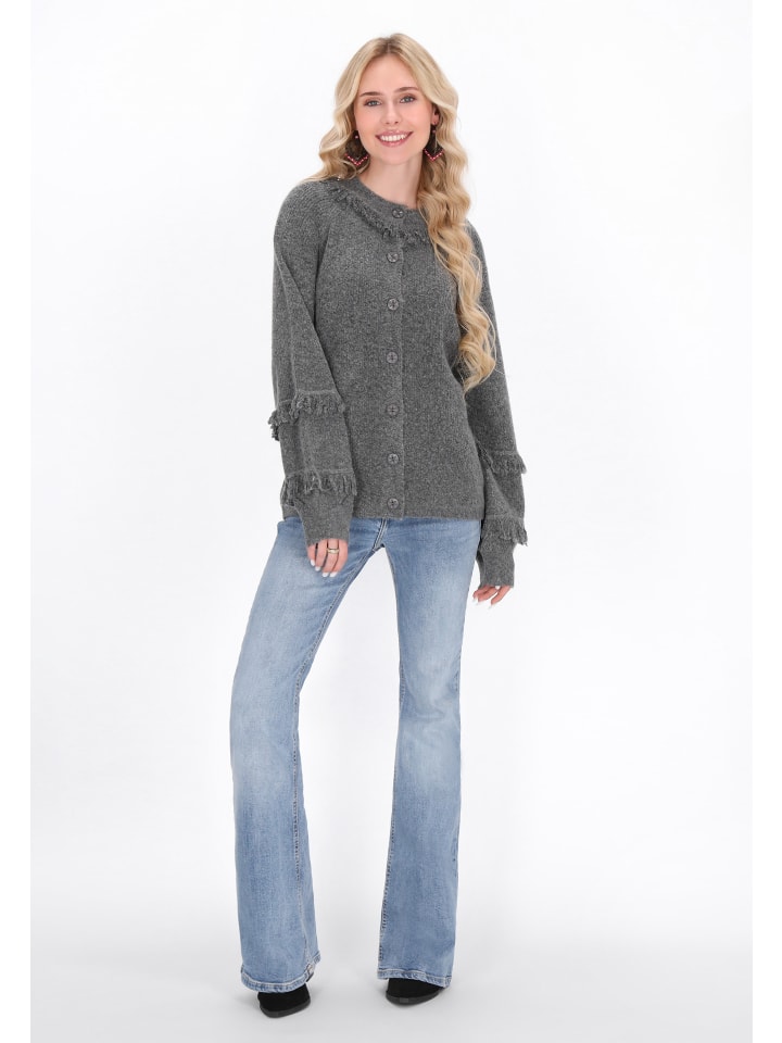 Создайте непринужденный образ с этим свободным кардиганом, созданным для максимального комфорта. Круглый вырез горловины и длинные рукава-бишоп придают ему очарование бохо. Застежка на пуговицы спереди и бахрома подчеркивают игривую текстуру вязки, делая его идеальным для повседневной носки, обеспечивая комфорт с любым нарядом. Из коллекции Fashion Look.