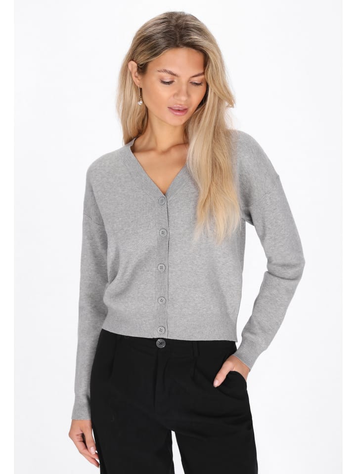- Кардиган свободного кроя с V-образным вырезом и длинными рукавами