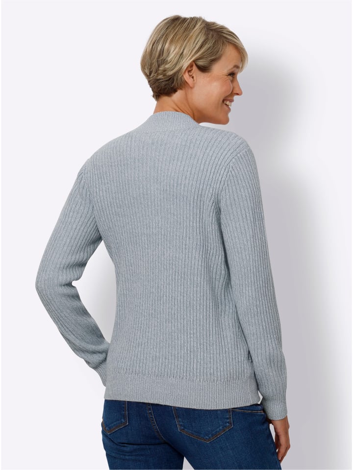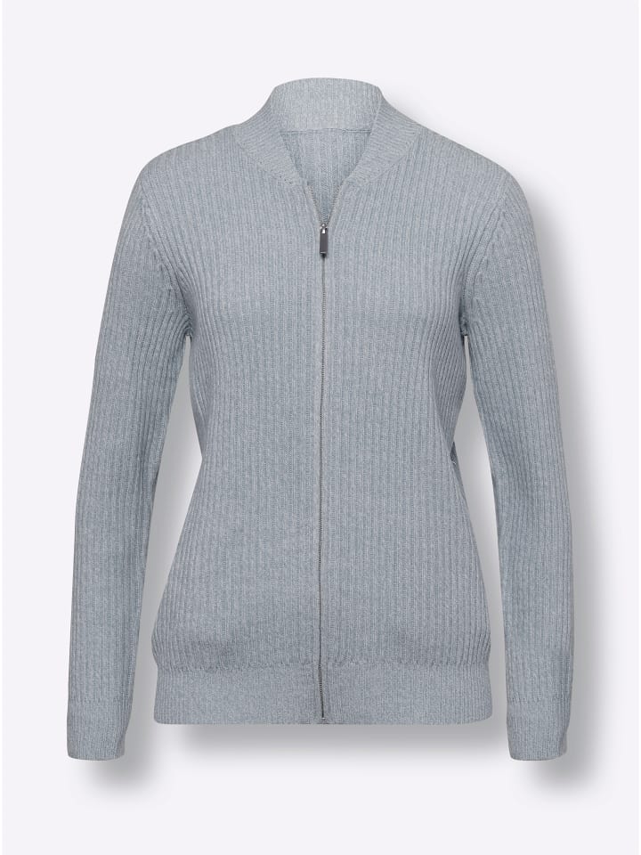 Какая универсальная вещь! Кардиган в популярном ребристом стиле с воротником-стойкой, застежкой-молнией и длинными рукавами. Два практичных прорезных кармана. Качество особенно легко в уходе. Изготовлен из переработанного полиакрила.